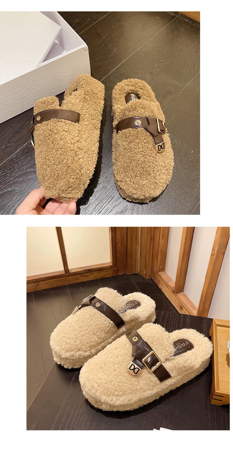 Модные женские полуботинки на толстой платформе с закрытым носком, подходящие для носки на улице, новинка осени-зимы 2025 года, обувь из овечьей шерсти с дополнительной флисовой подкладкой.