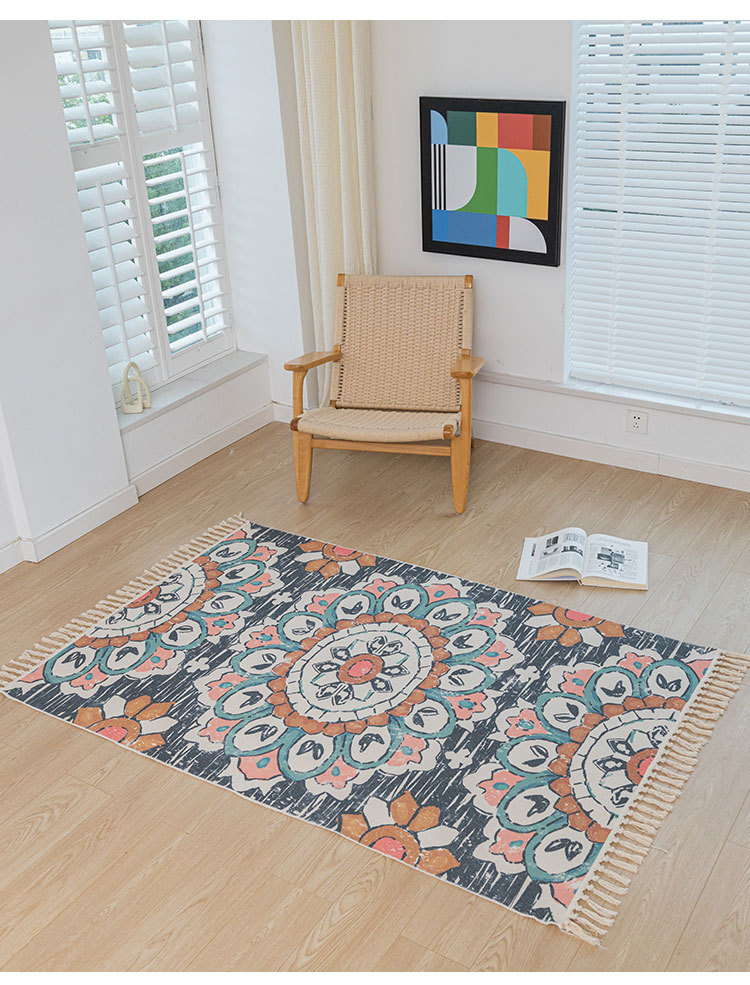 Хлопковый и льняной коврик в этническом стиле гостиная диван ковер спальня прикроватный длинный коврик богемный стиль машинная стирка