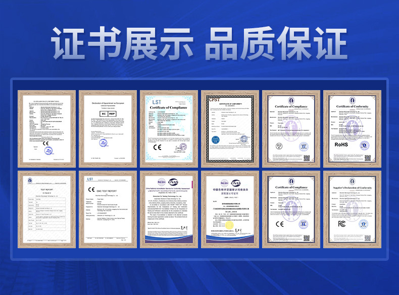 有PSE,UL,CE、RSL-Phthalate 、RSL Report、 RoHS、FCC等认证