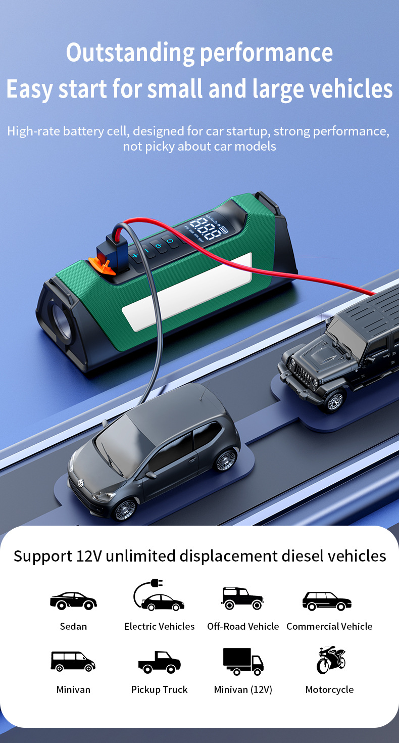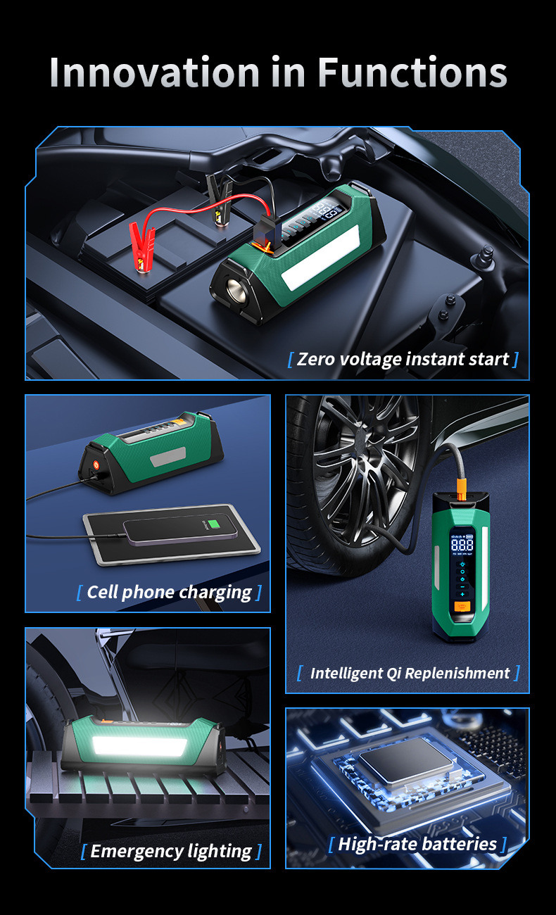 Многофункциональное пусковое устройство для автомобиля 5000А с интегрированным автомобильным компрессором и функцией бустера UL