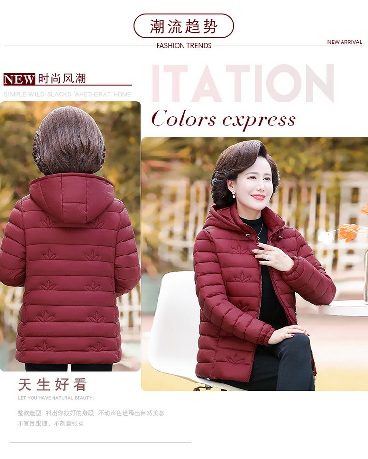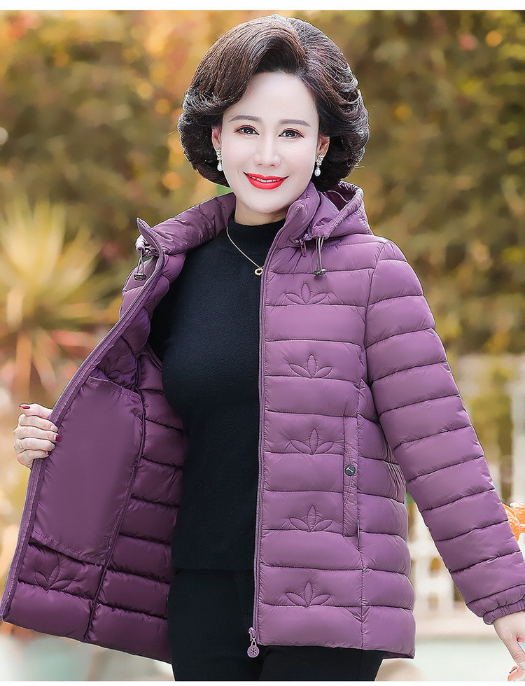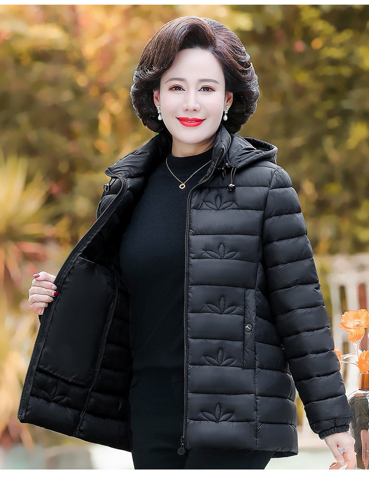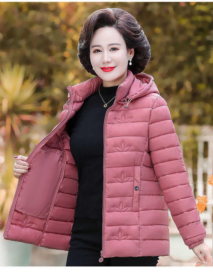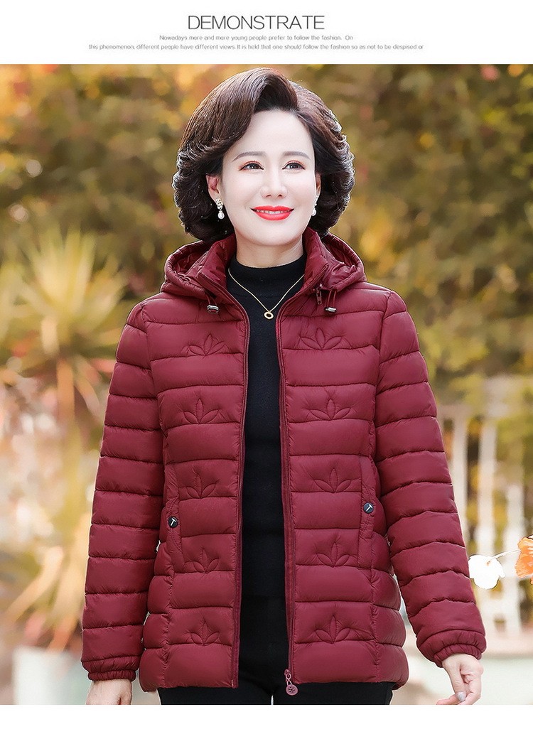 Короткое пальто для мамы с капюшоном и хлопковой подкладкой для женщин среднего возраста, осенне-зимнее пуховое пальто с хлопковой подкладкой для среднего и пожилого возраста, теплая маленькая куртка с хлопковой подкладкой
