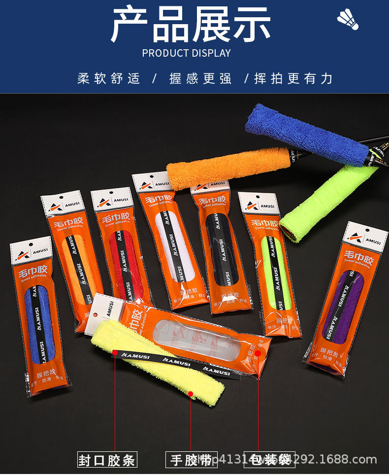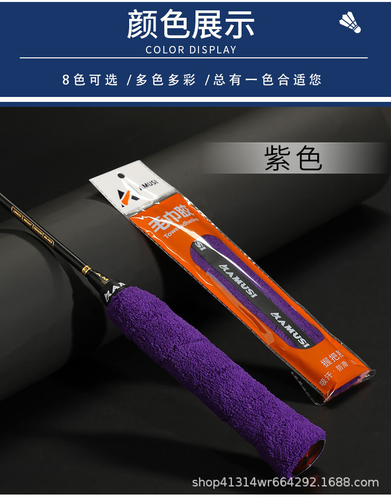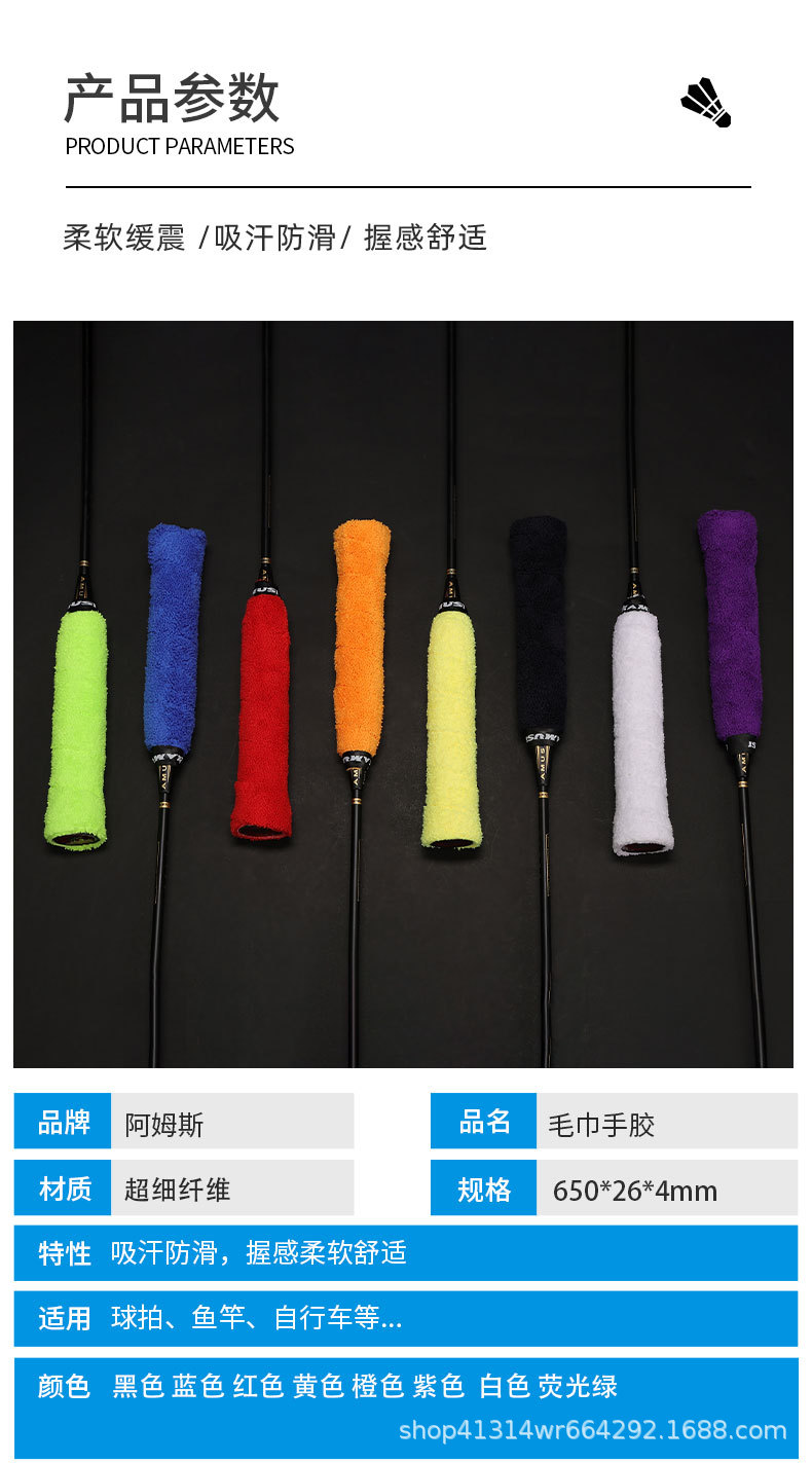 品名 【毛巾吸汗带】规格 【长65厘米*宽3厘米*厚0.4厘米】 材质【长毛超纤】 颜色【黑色 蓝色 白色 红色 紫色 黄色 橙色 荧光绿】独立包装