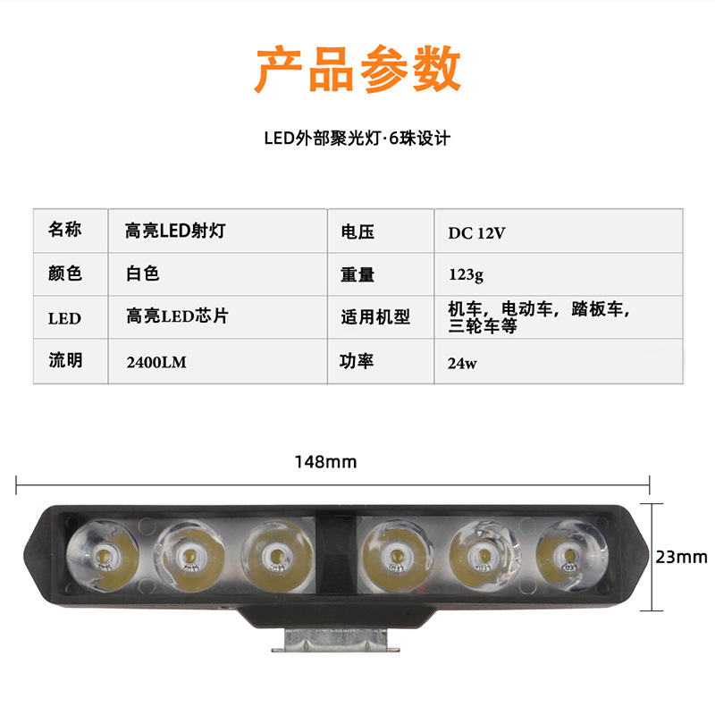 Модификация светодиодной фары для электромотоцикла с 6 светодиодами, ультраяркий, сверхмощный внешний водонепроницаемый прожектор с высокой яркостью.