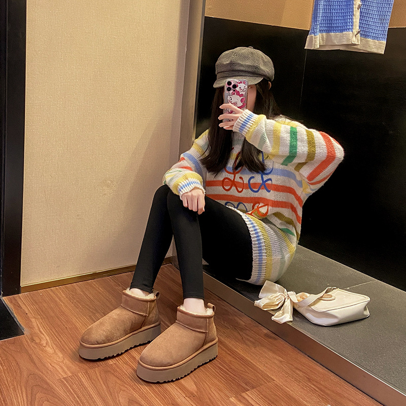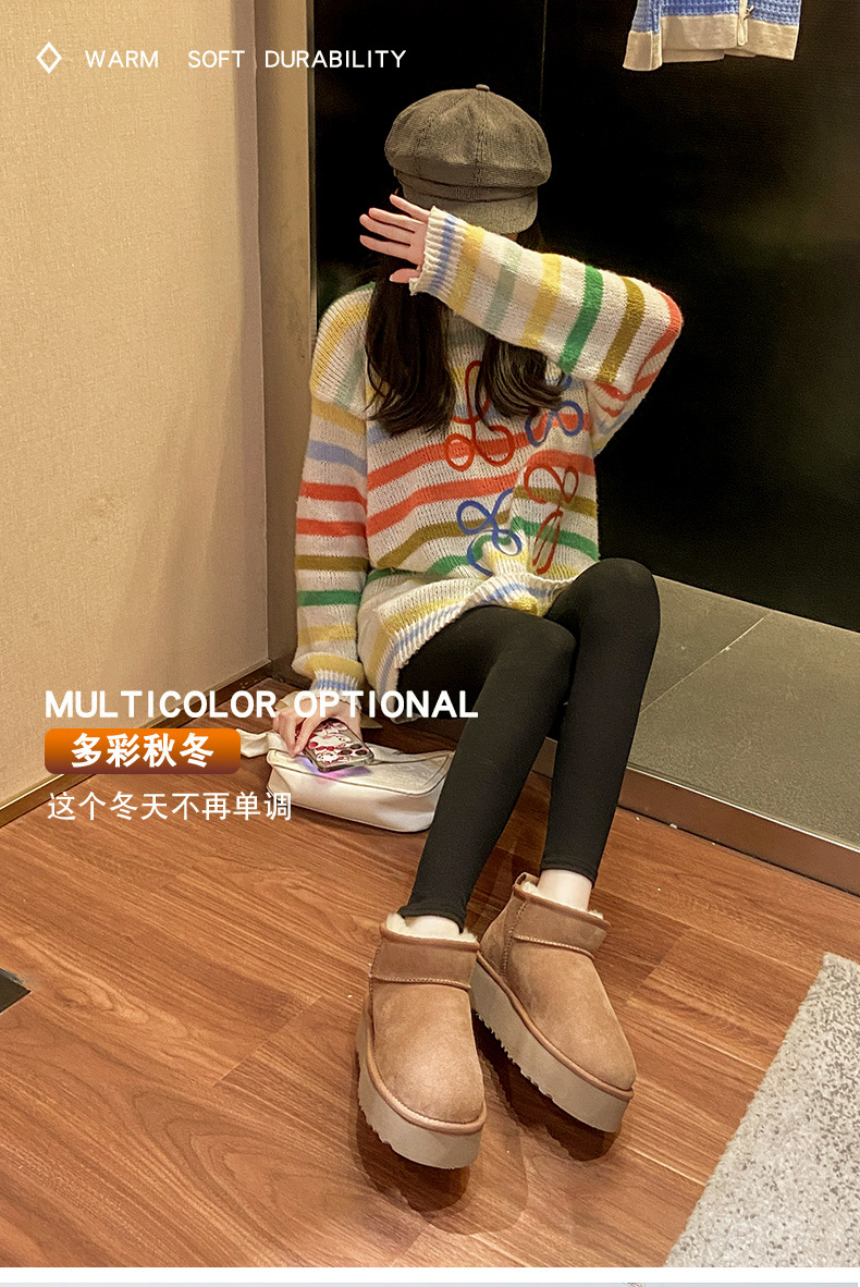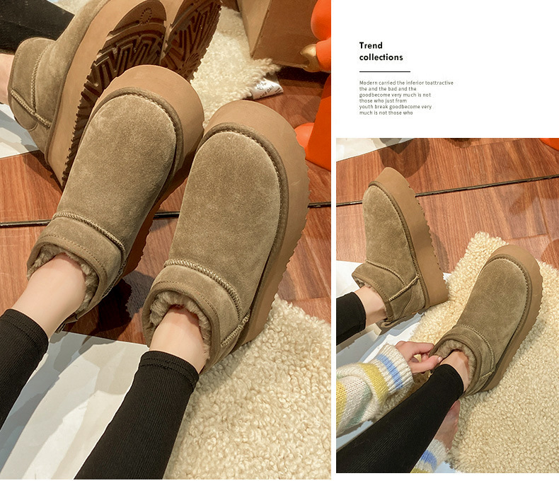 Сладкие зимние сапоги женские зимние меховые интегрированные 2023 новые зимние хлопчатобумажные туфли без шнуровки женские короткие сапоги хлебные туфли холодная липкая