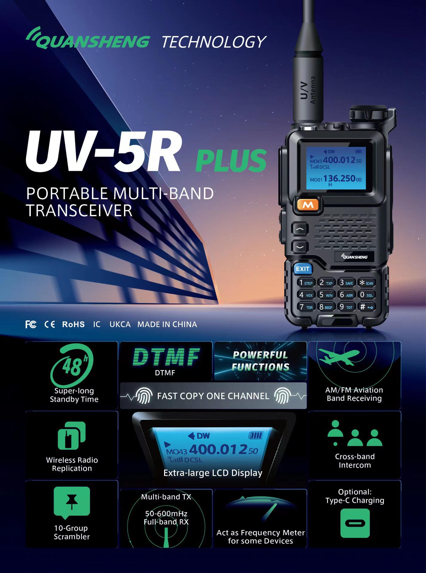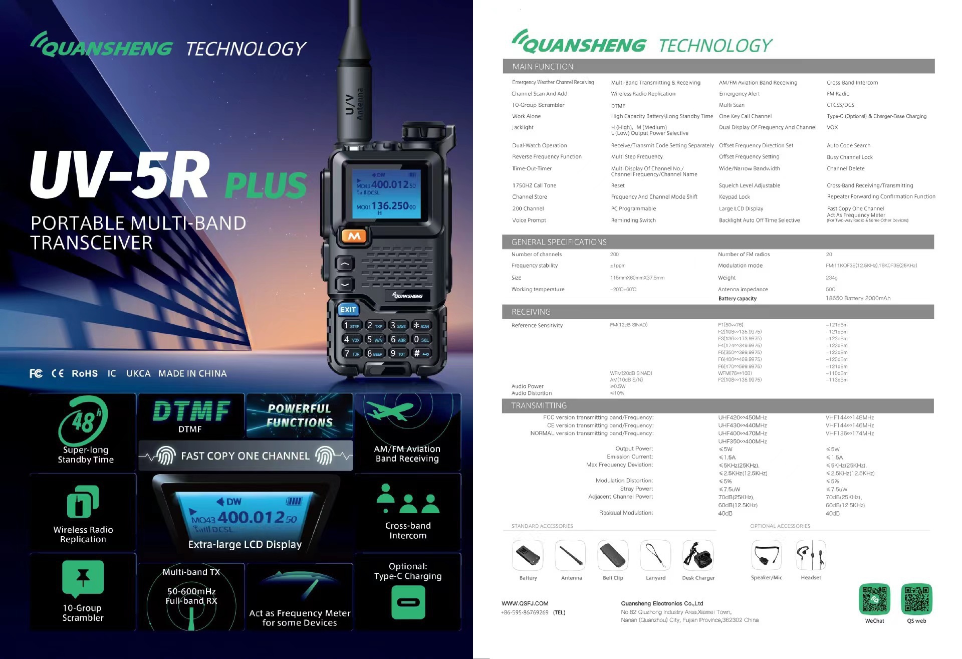 Quansheng UV-5RPLUS домофон наружные гражданские ручные столы с высокой мощностью 10W английский автозак оптовая продажа