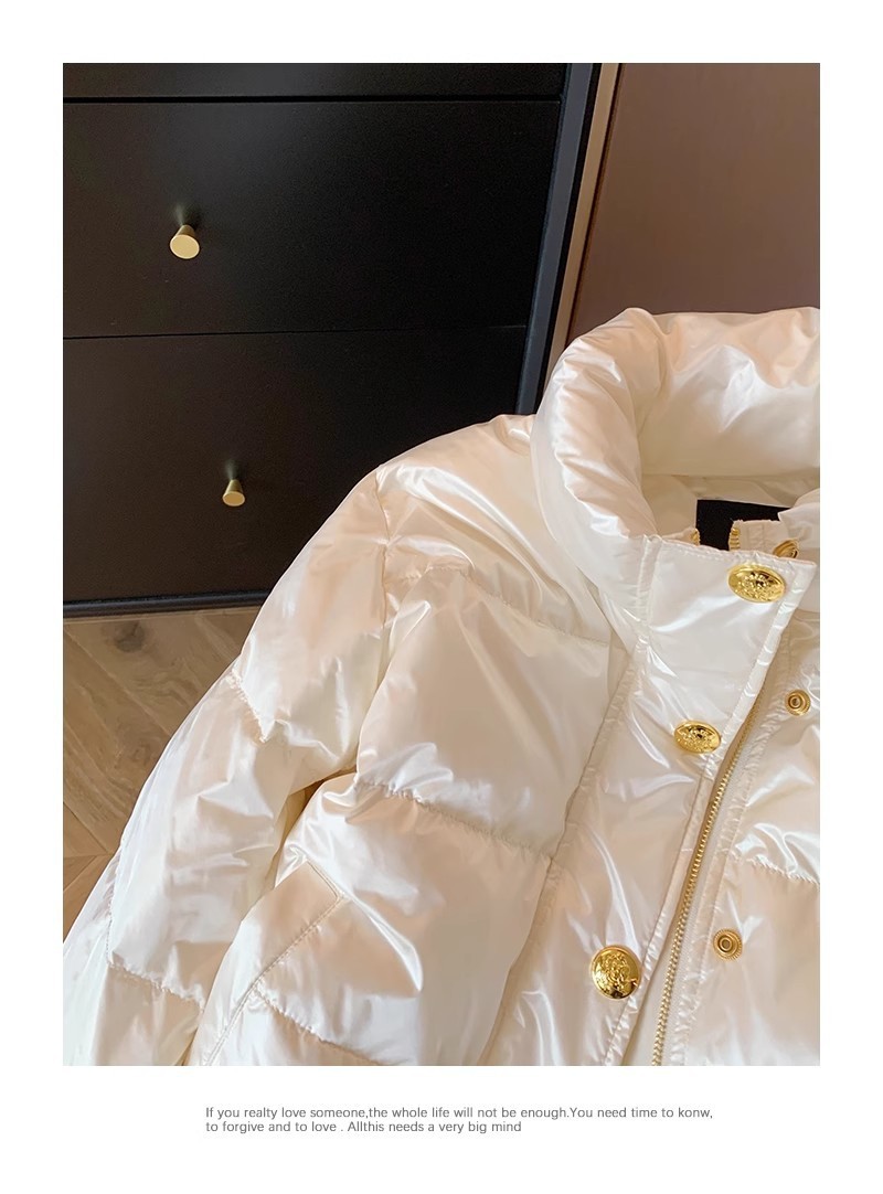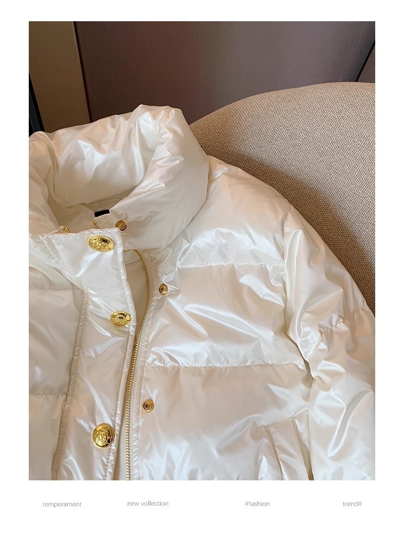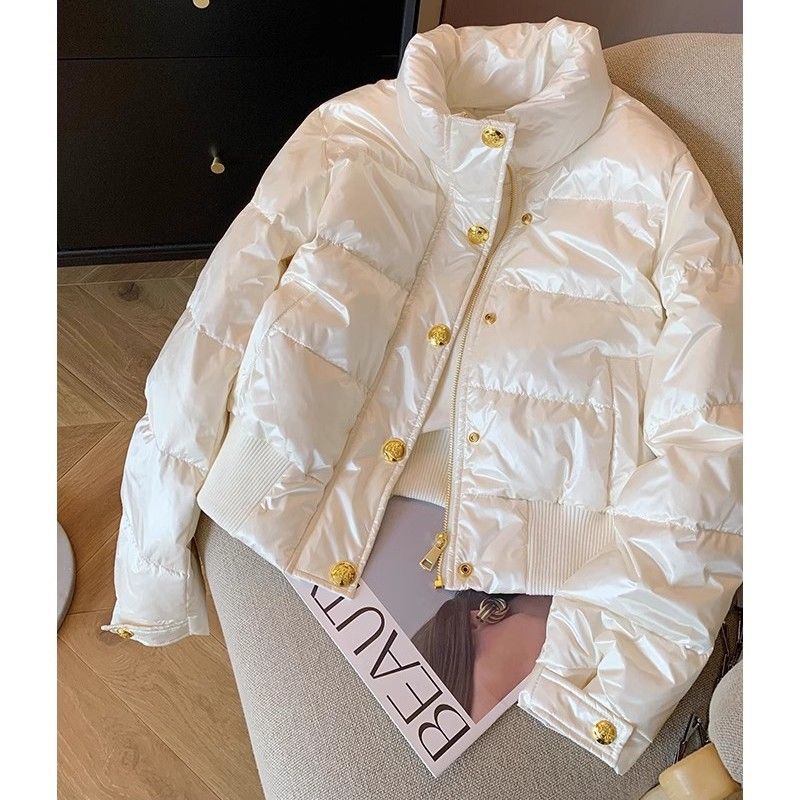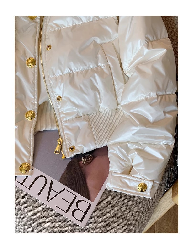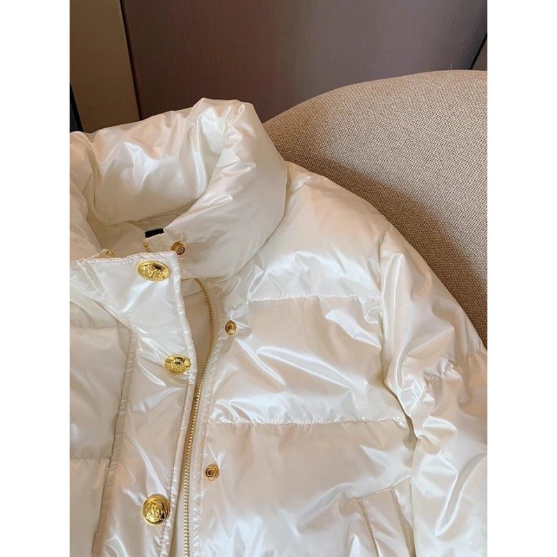 Белое модное утолщенное хлопковое пальто с воротником-стойкой, женское 2023 Зимний дизайн, универсальное теплое стеганое хлебное пальто