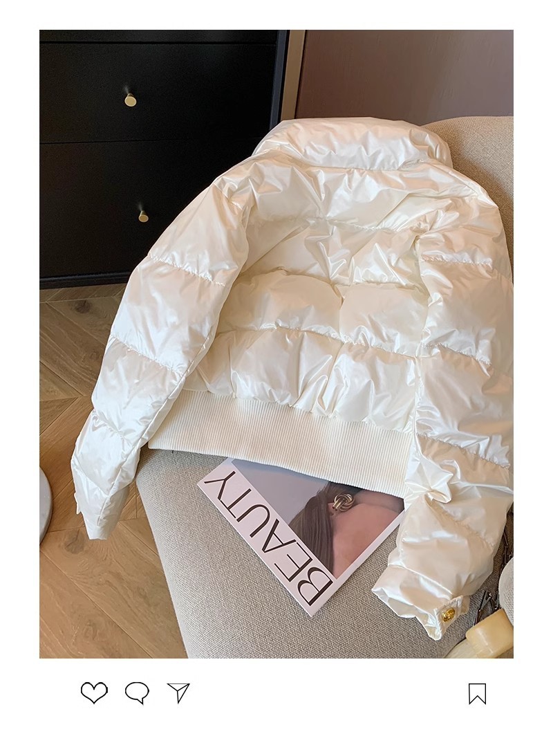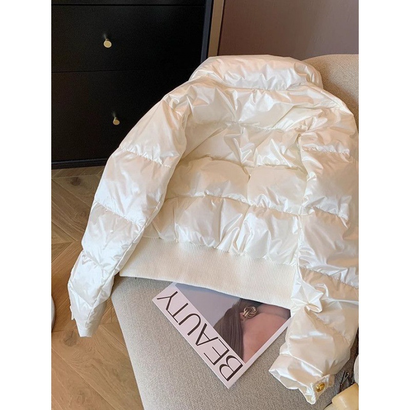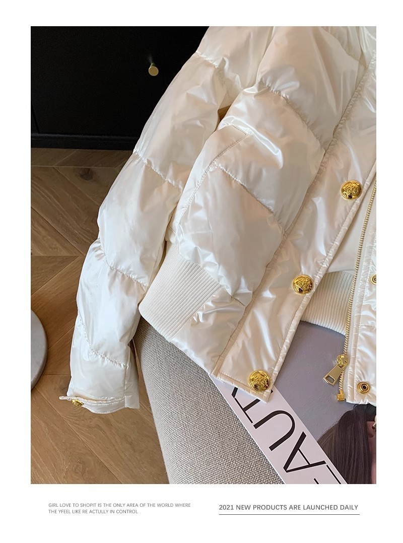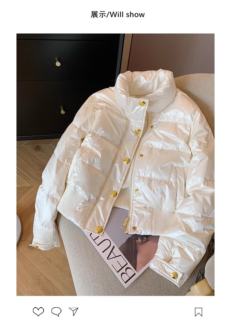 Белое модное утолщенное хлопковое пальто с воротником-стойкой, женское 2023 Зимний дизайн, универсальное теплое стеганое хлебное пальто