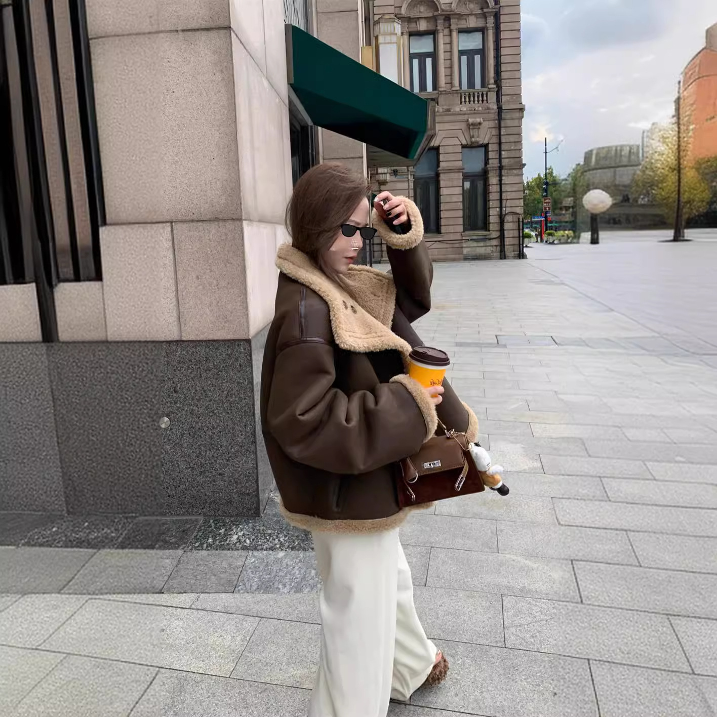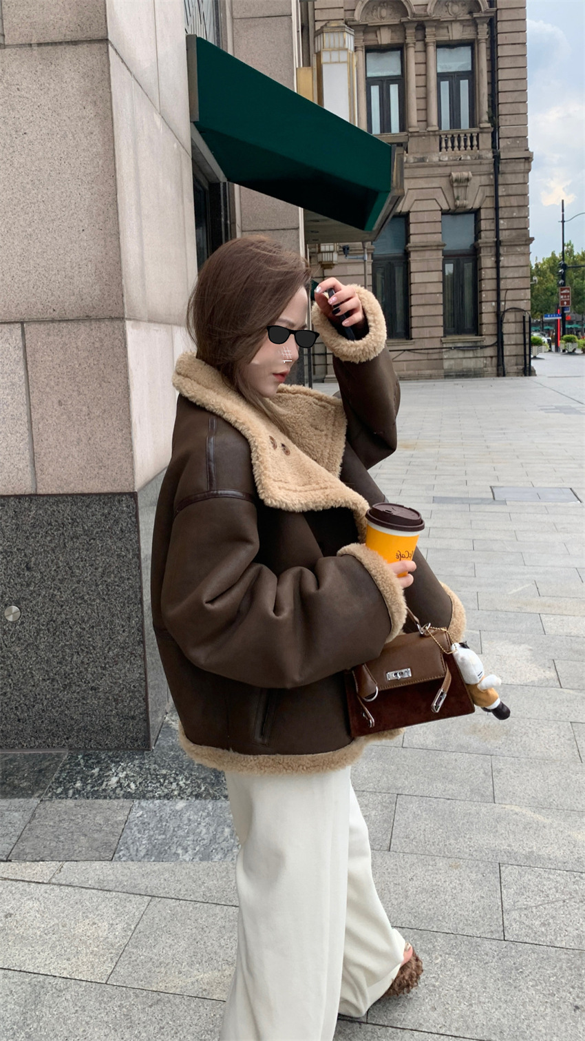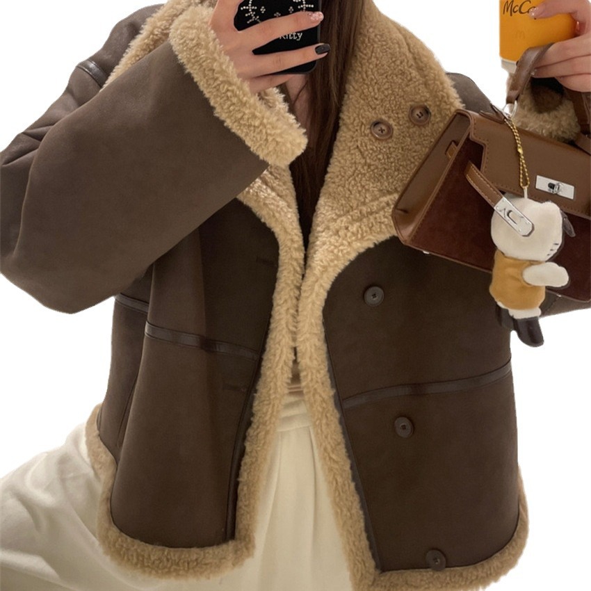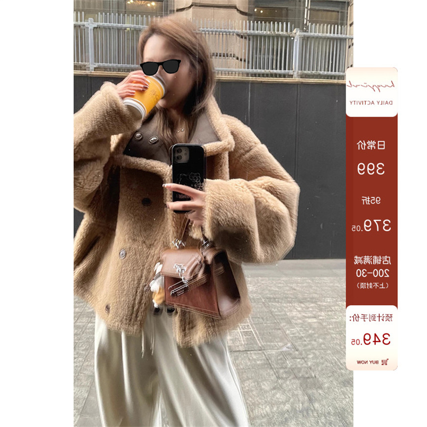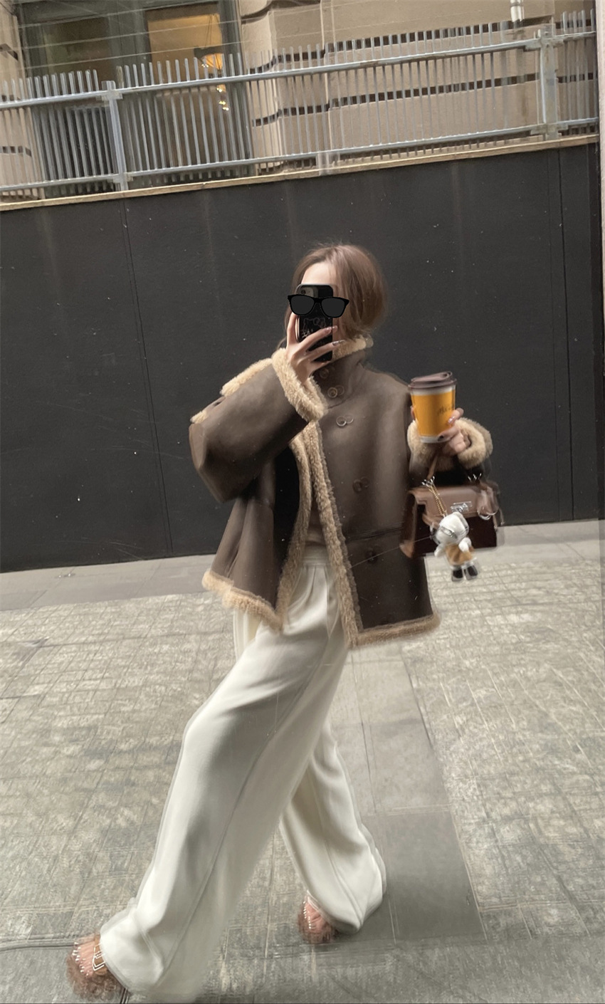 HEYGIRL черная зимняя меховая одежда с воротником-стойкой для мотоцикла, Двусторонняя одежда, шуба из искусственного меха ягненка