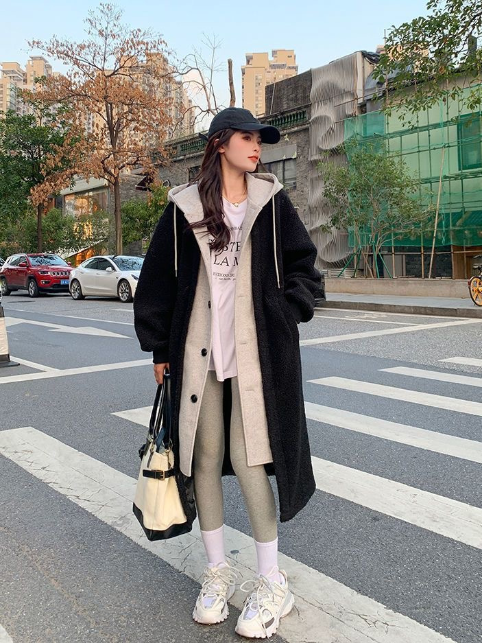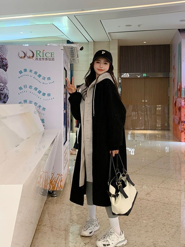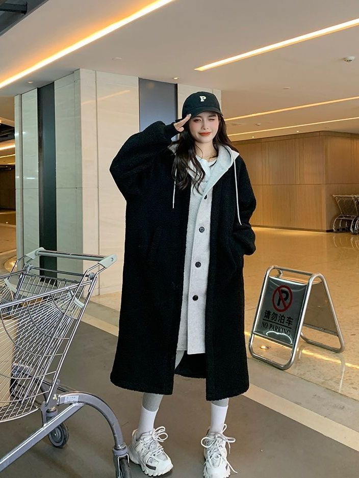 Корейский шик 2024 года: новое длинное пальто на осень и зиму, универсальное свободное модное пальто из шерсти ягненка, трендовое в Instagram.