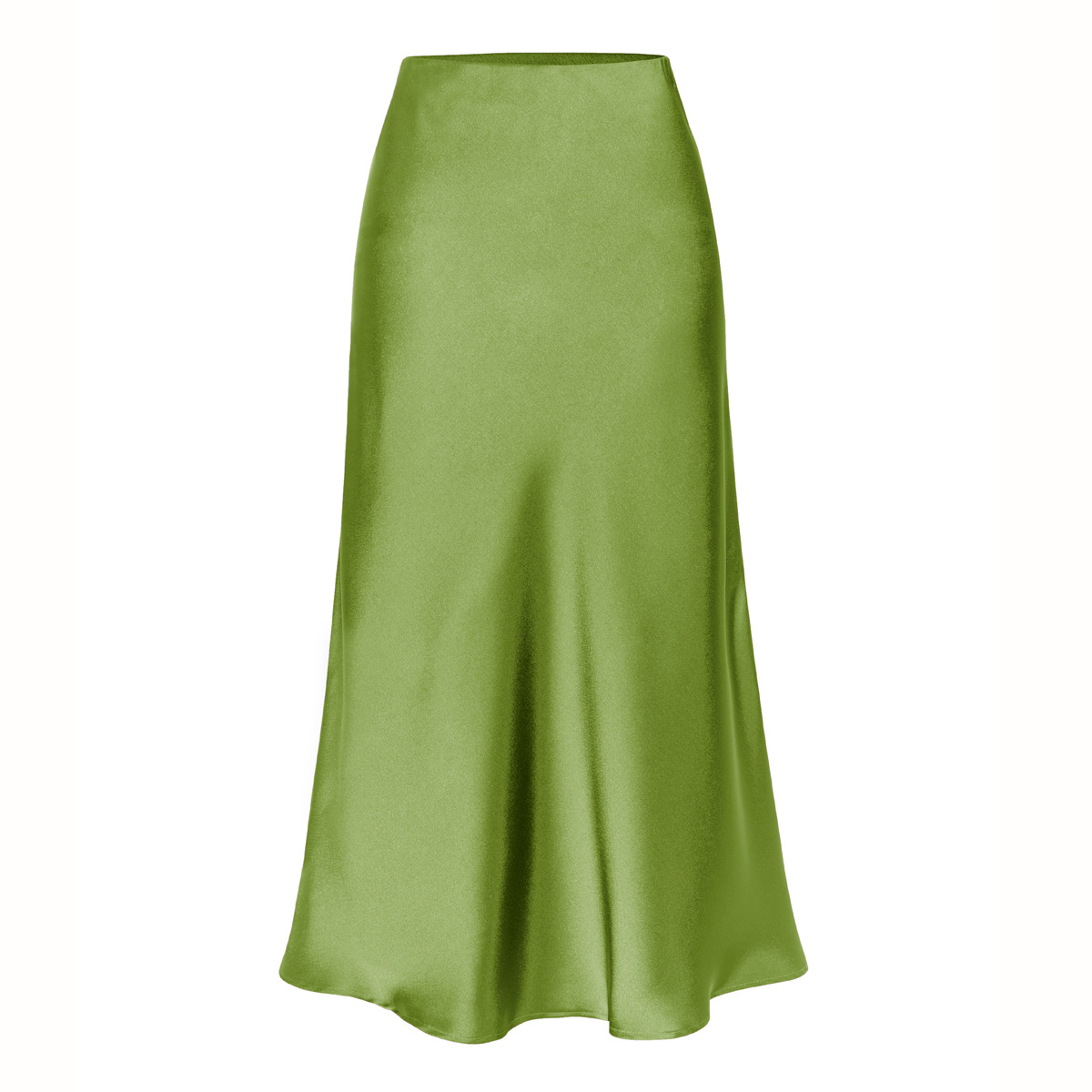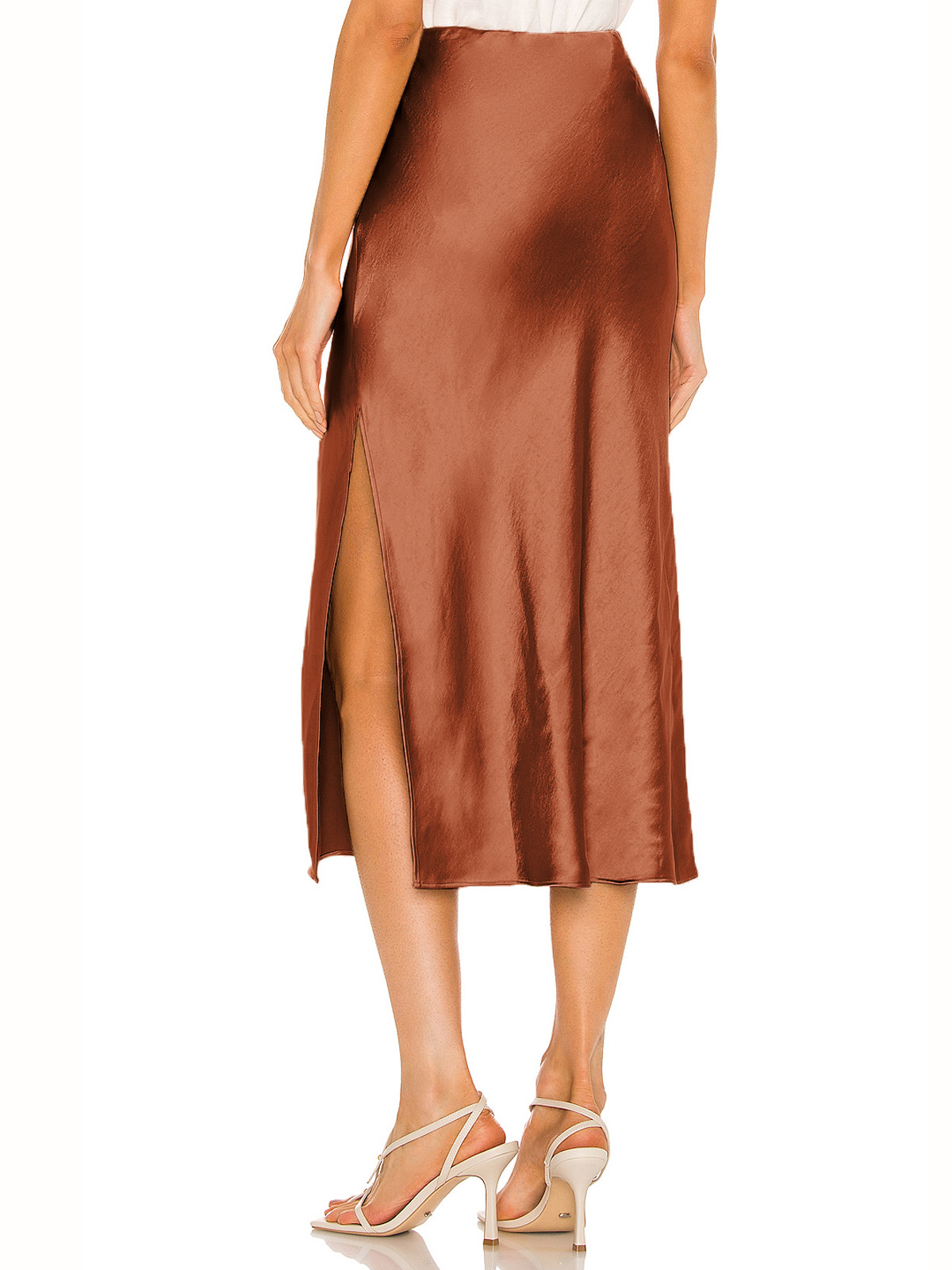 В наличии FBA Высококачественная ацетатласная юбка эластичная с высокой талией Однотонная юбка миди с разрезом женская одежда Amazon