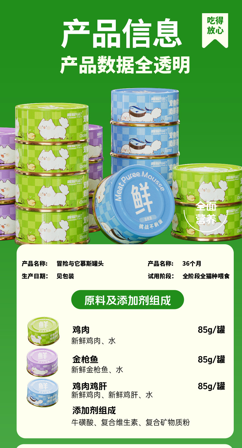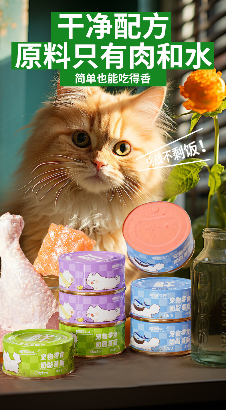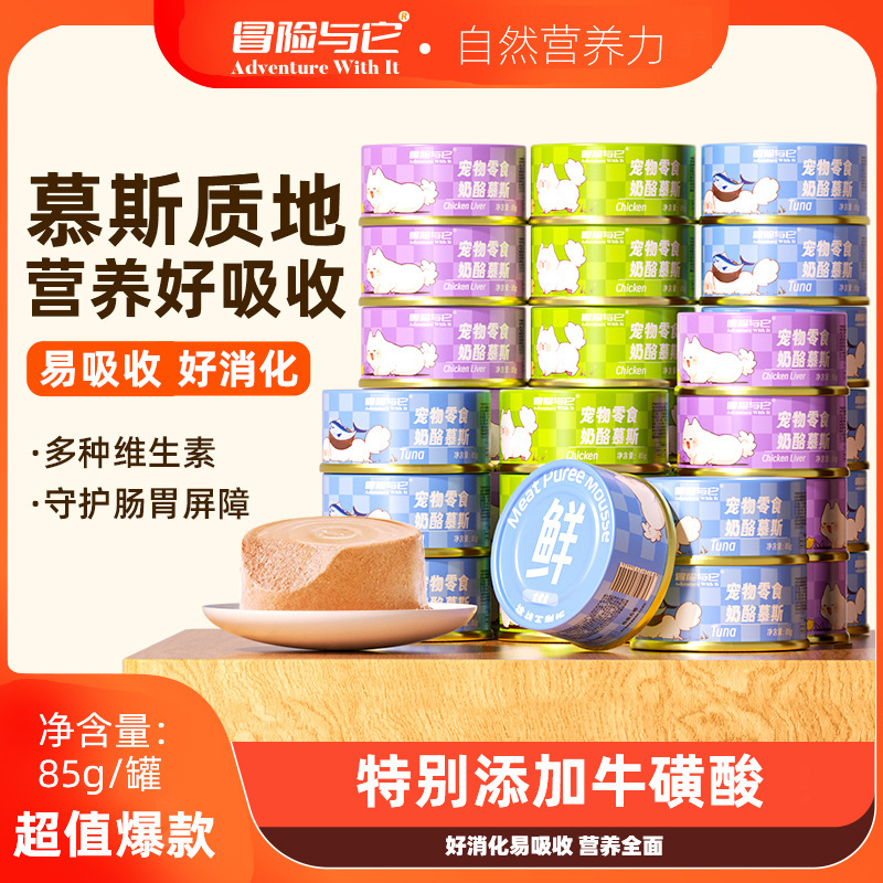 Консервы для кошек Adventure and It Mousse Cat, 85 г, влажный корм для взрослых кошек и котят, мясное пюре, питательные закуски для кошек