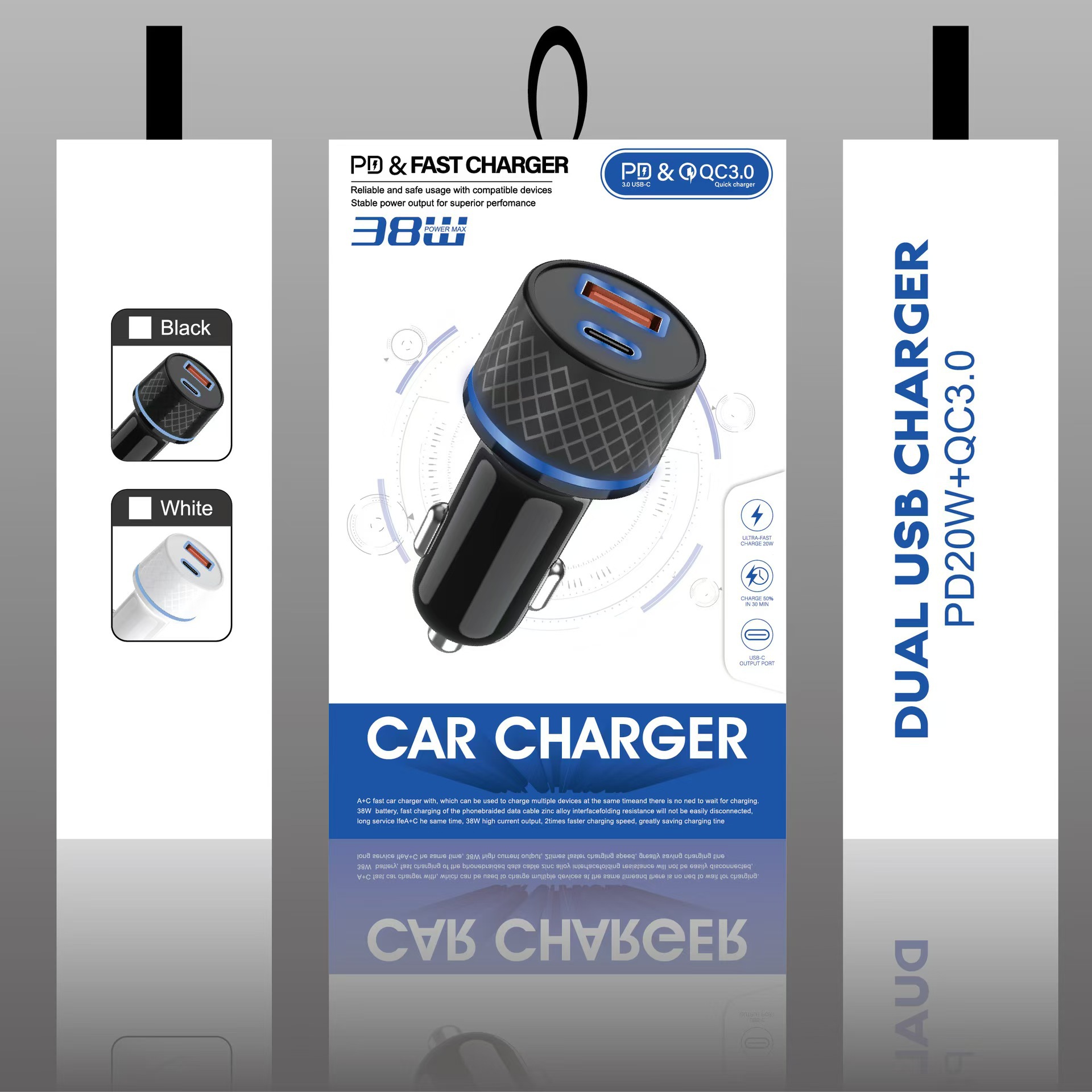 Grid Car зарядное устройство Автомобильное зарядное устройство 1 перетаскивание 2 Супер быстрая зарядка QC3.0 Быстрая зарядка U C Автомобильный прикуриватель PD20W