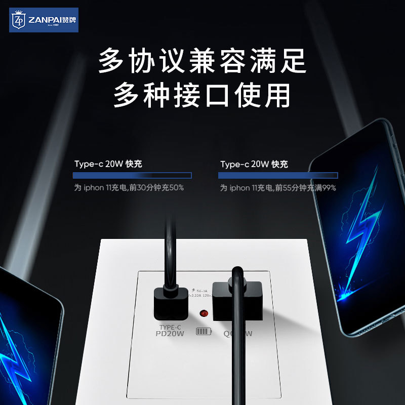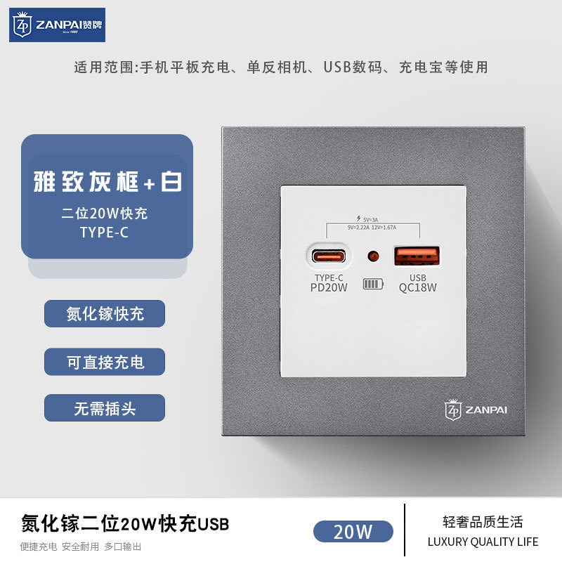 Слава бренду 86 Тип скрытый нитрид галлия двухпозиционная Быстрая зарядка USB-разъем 20 Вт белый серый TYPE-C панель зарядного гнезда