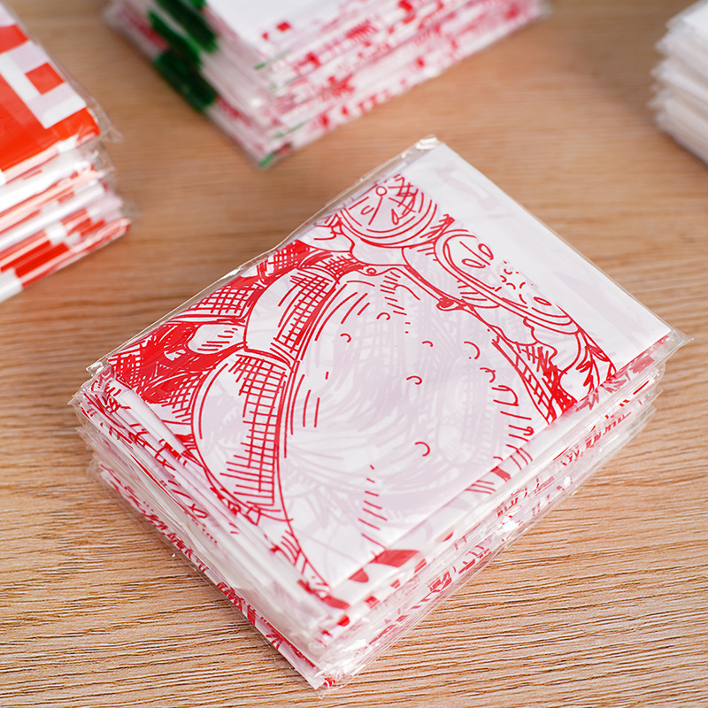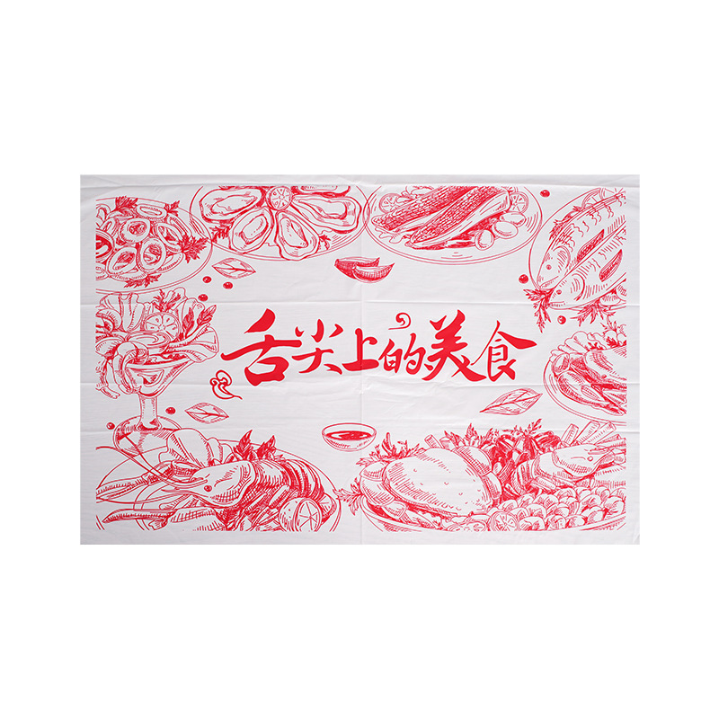 Оптовая Продажа с фабрики одноразовая скатерть с принтом логотипа на вынос салфетки в индивидуальной упаковке маслостойкая грязеотталкивающая пластиковая салфетка