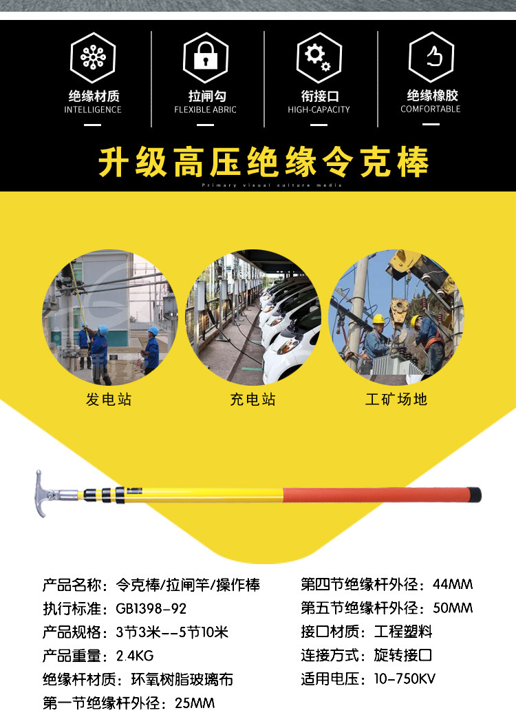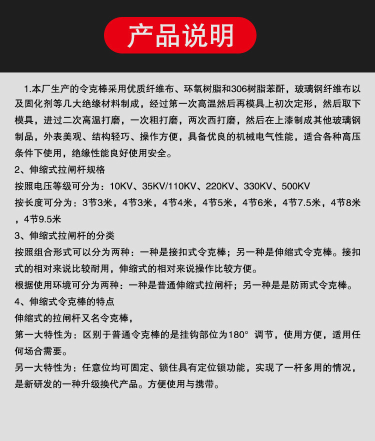 Изолирующий долбежный стержень высокого давления, тормоз из стекловолокна, операционный стержень, портативный телескопический изоляционный стержень, изолирующий телескопический долбежный стержень