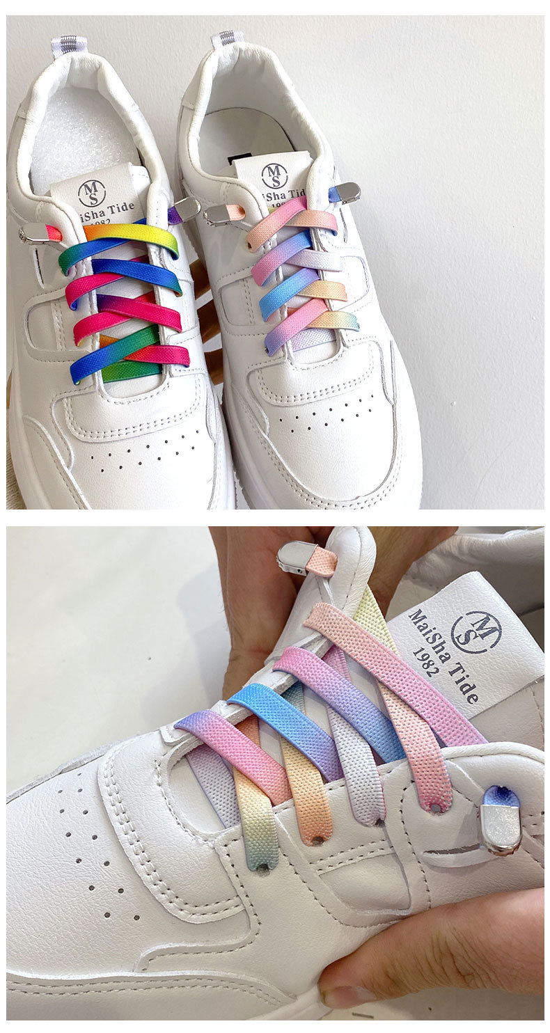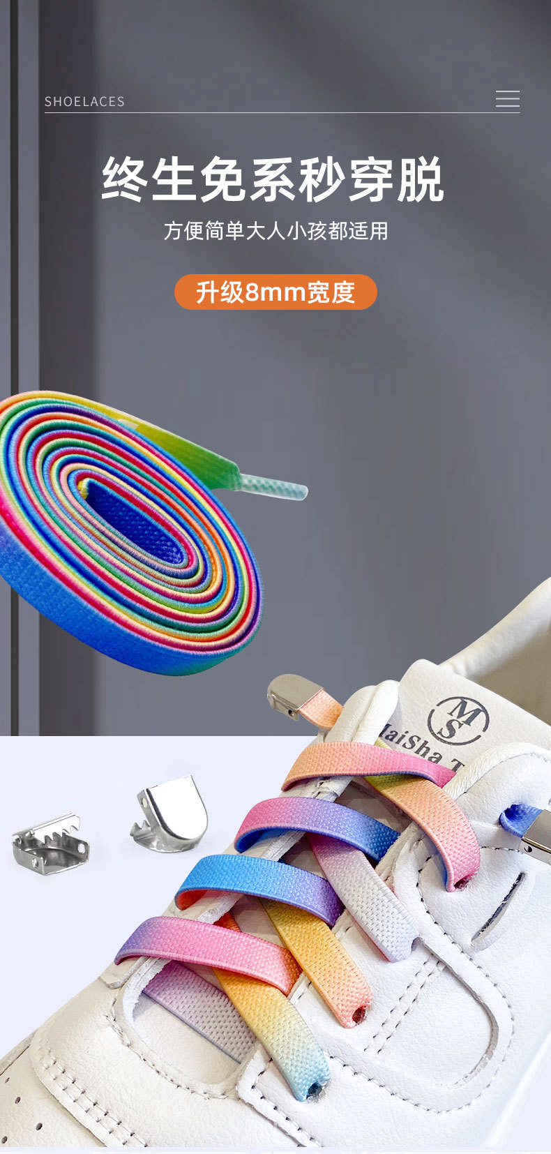 Градиентный цвет ленивый шнурки 8 мм плоская резинка повседневная обувь для взрослых детей эластичная шнурка веревка одна пара оптом