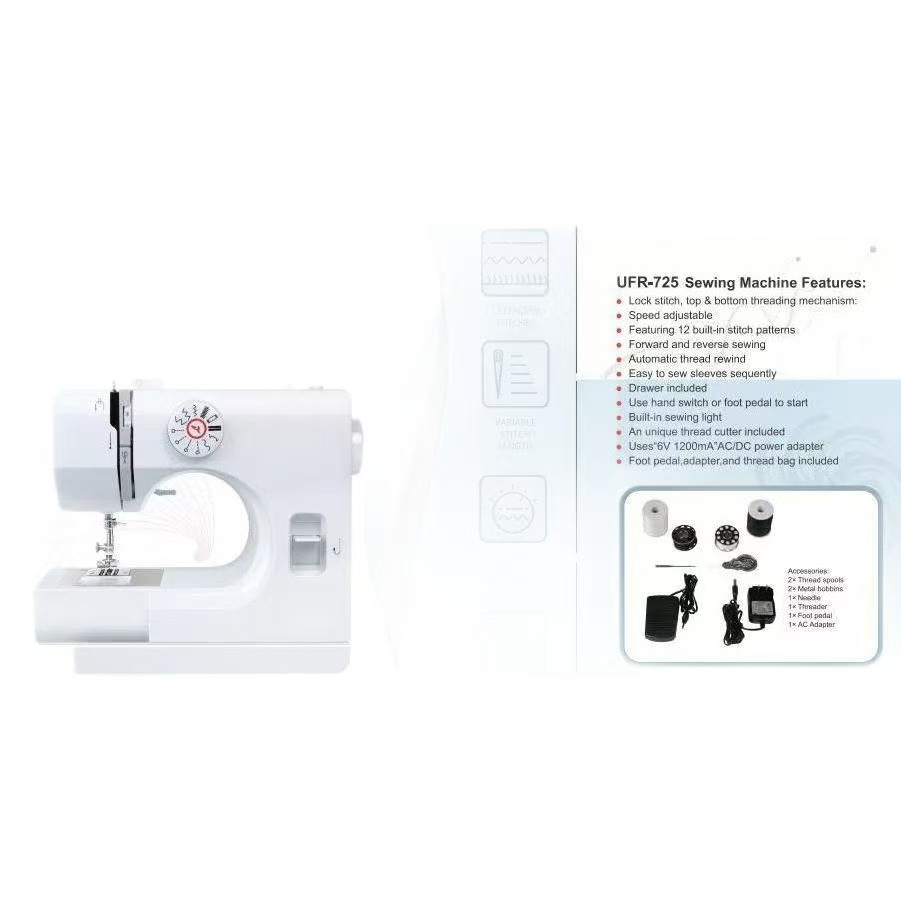 友立佳725缝纫机亚马逊电商家用迷你锁边扣眼吃厚可印log跨境钉扣