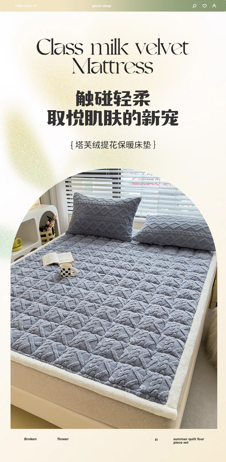 Зимний утепленный матрас-накладка из молочного вельвета, тонкий, для односпальной кровати, для общежития, для студентов