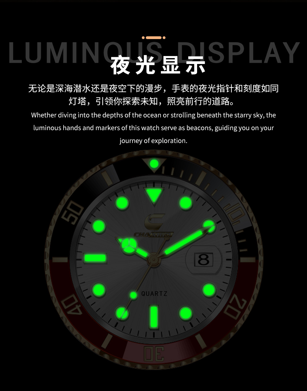 Швейцарский бренд CHAXIGO Мужские часы зеленый водонепроницаемый призрак водонепроницаемый дикий сплав кварцевые часы