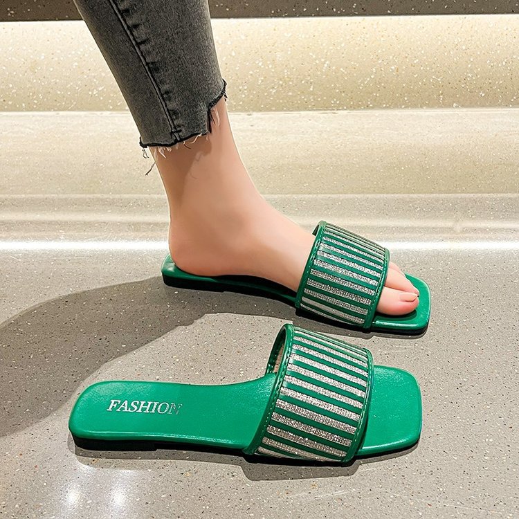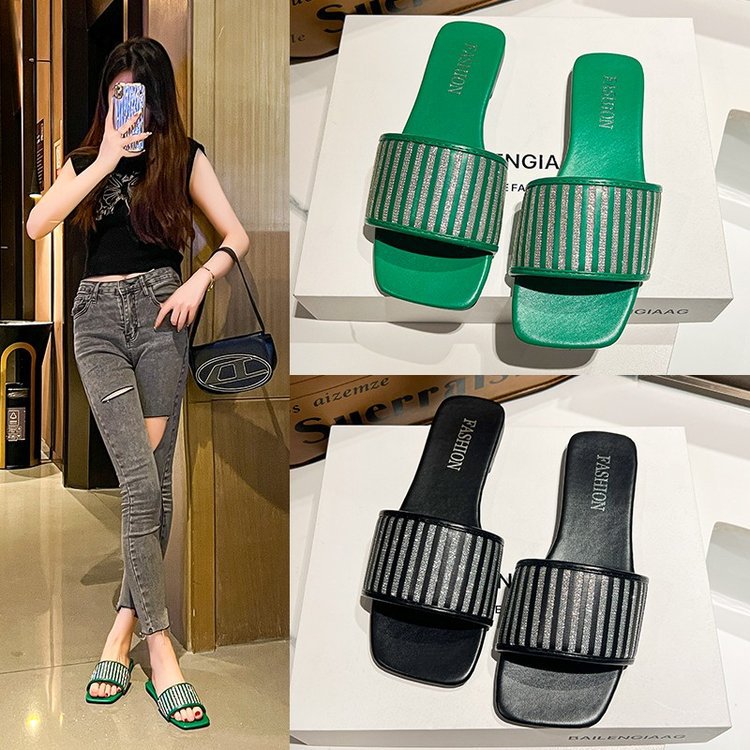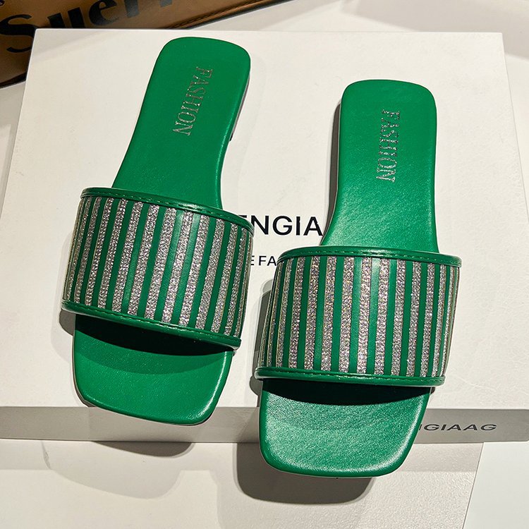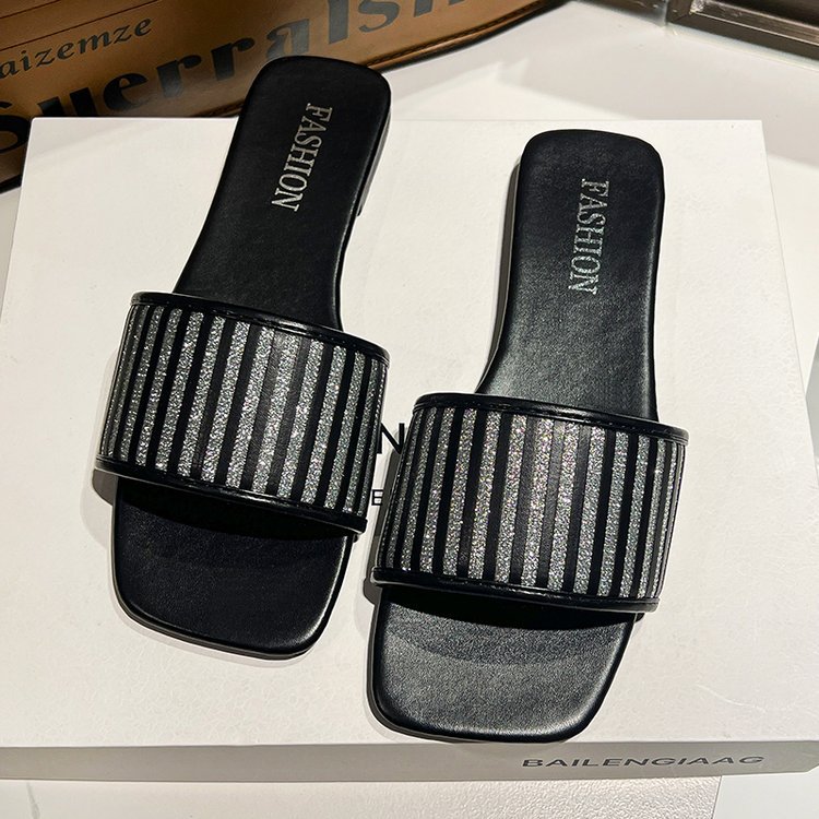 2024 Весна и лето Новые Модные женские сандалии на плоской подошве Женская верхняя одежда модные полосатые встраивания простые Тапочки женские
