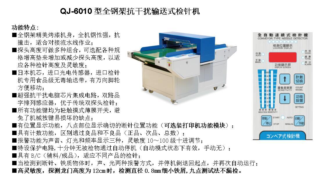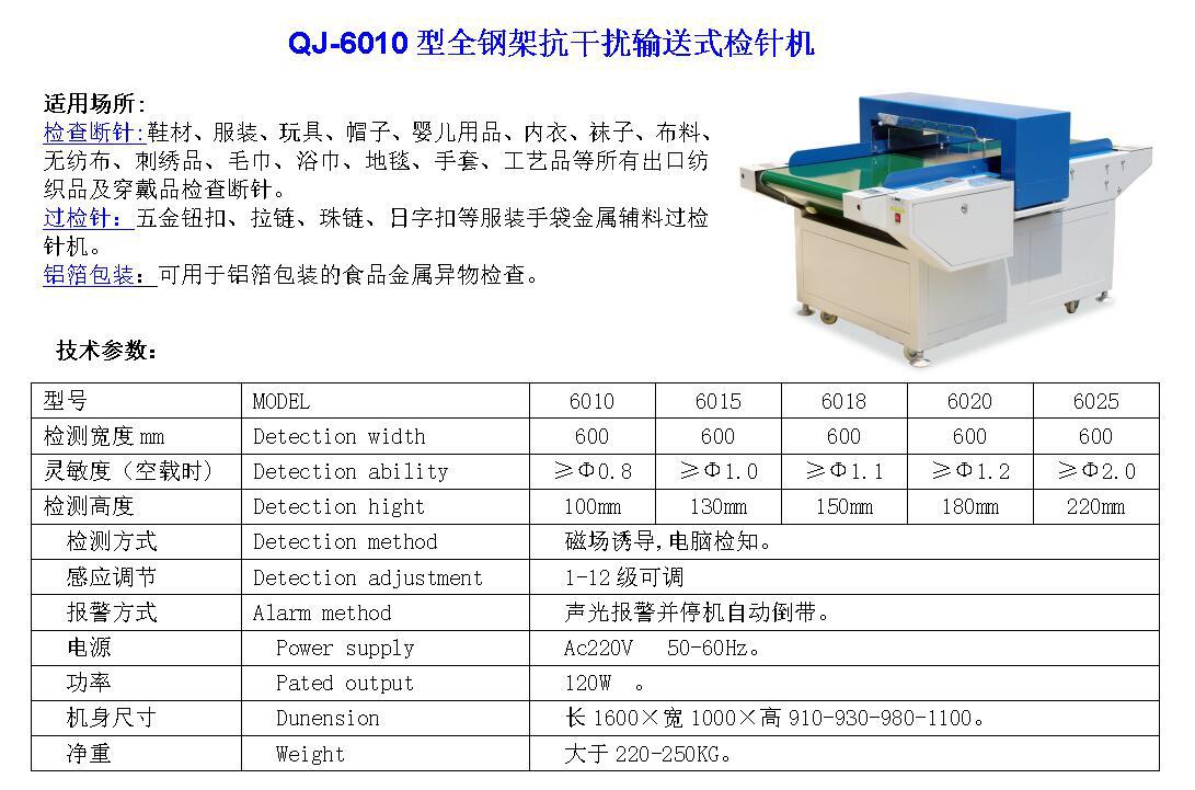 QJ-6018型全钢架抗干扰输送式检针机(出口)