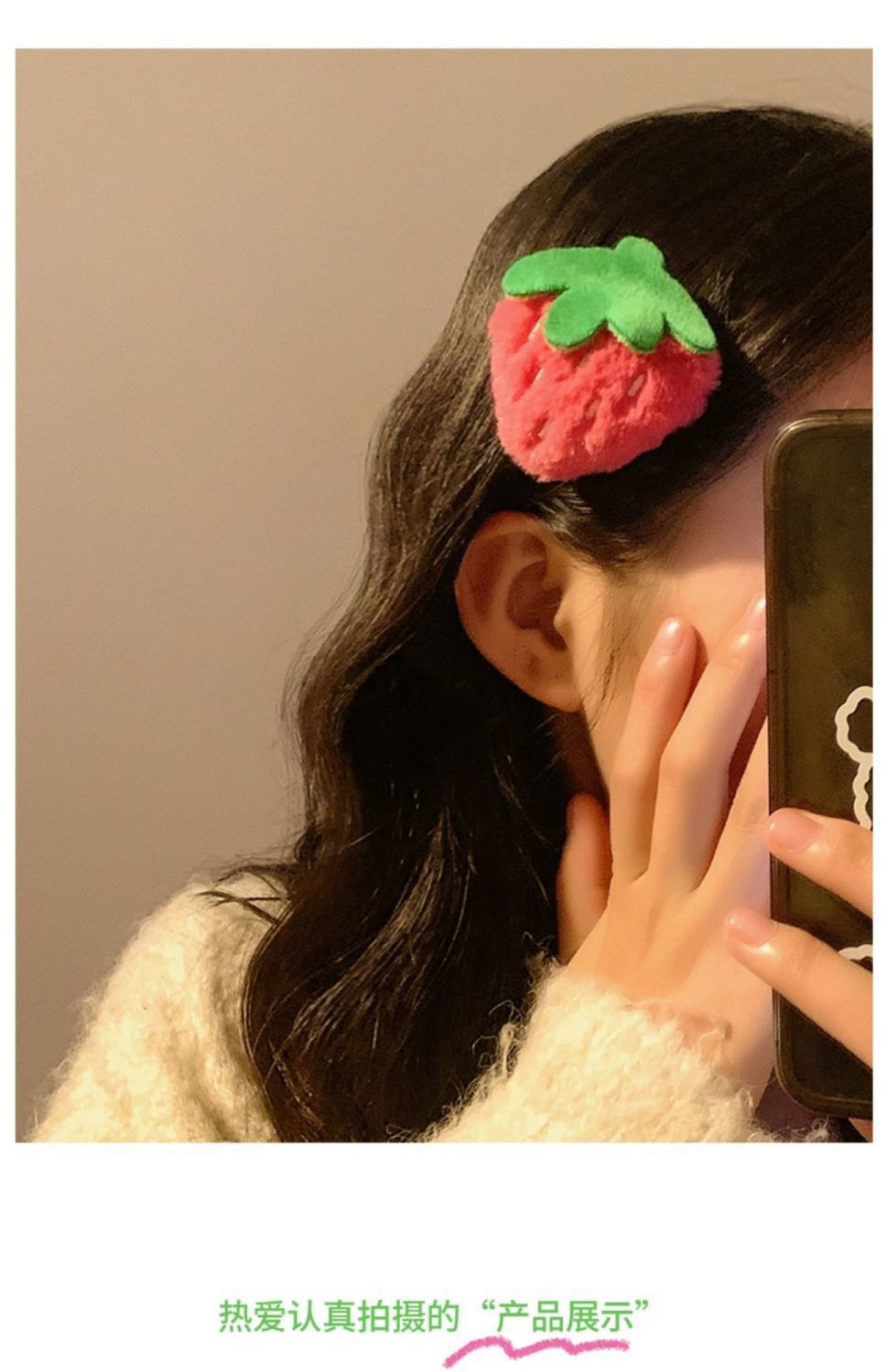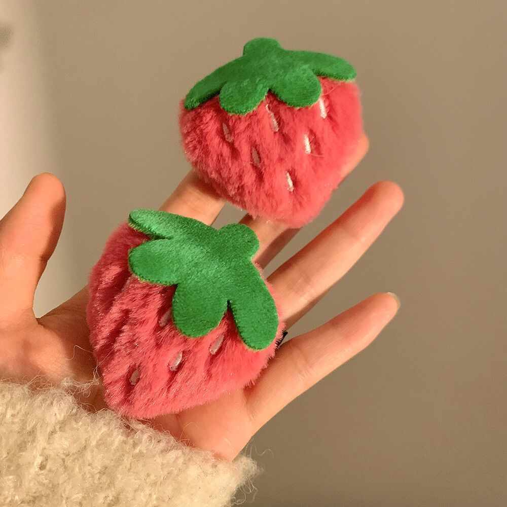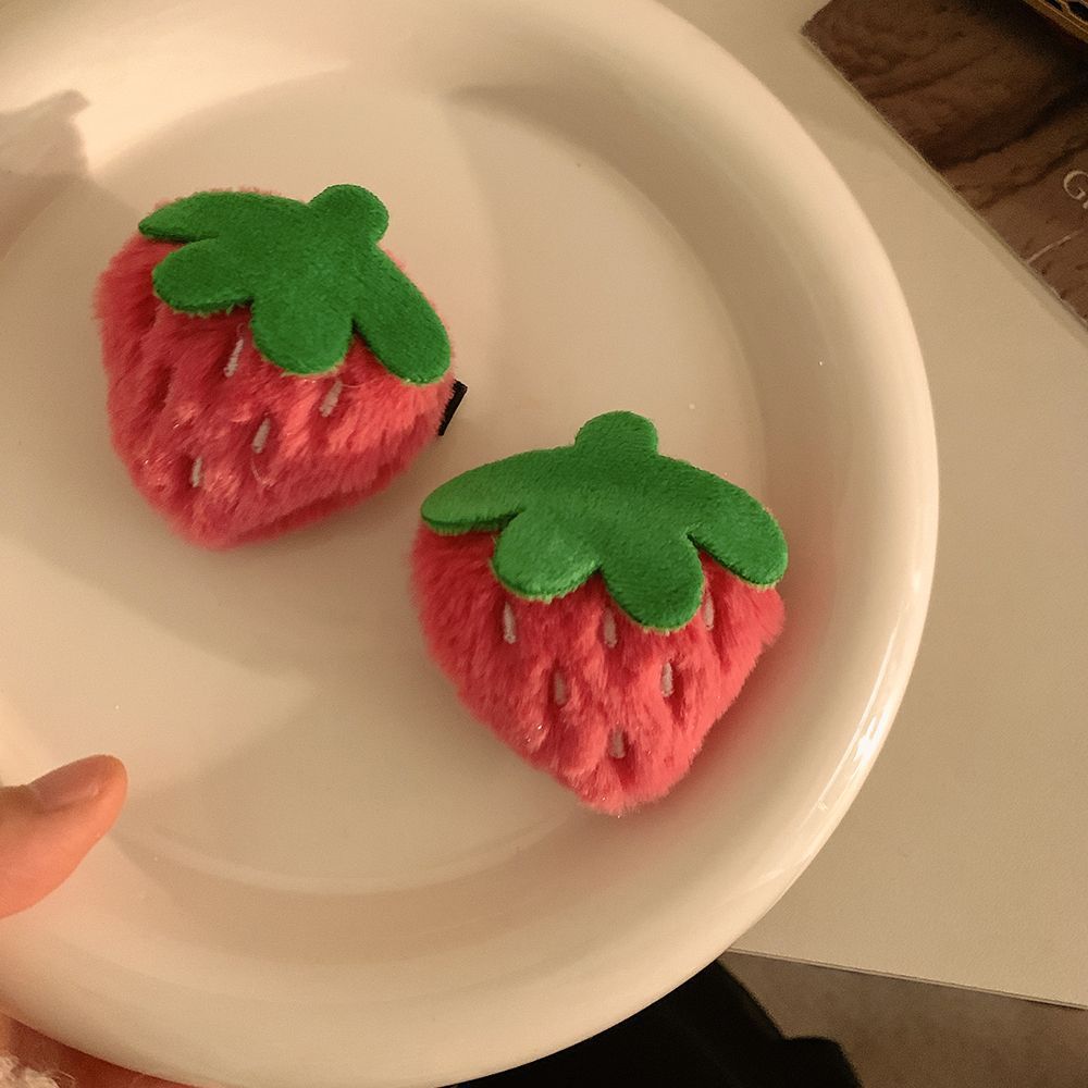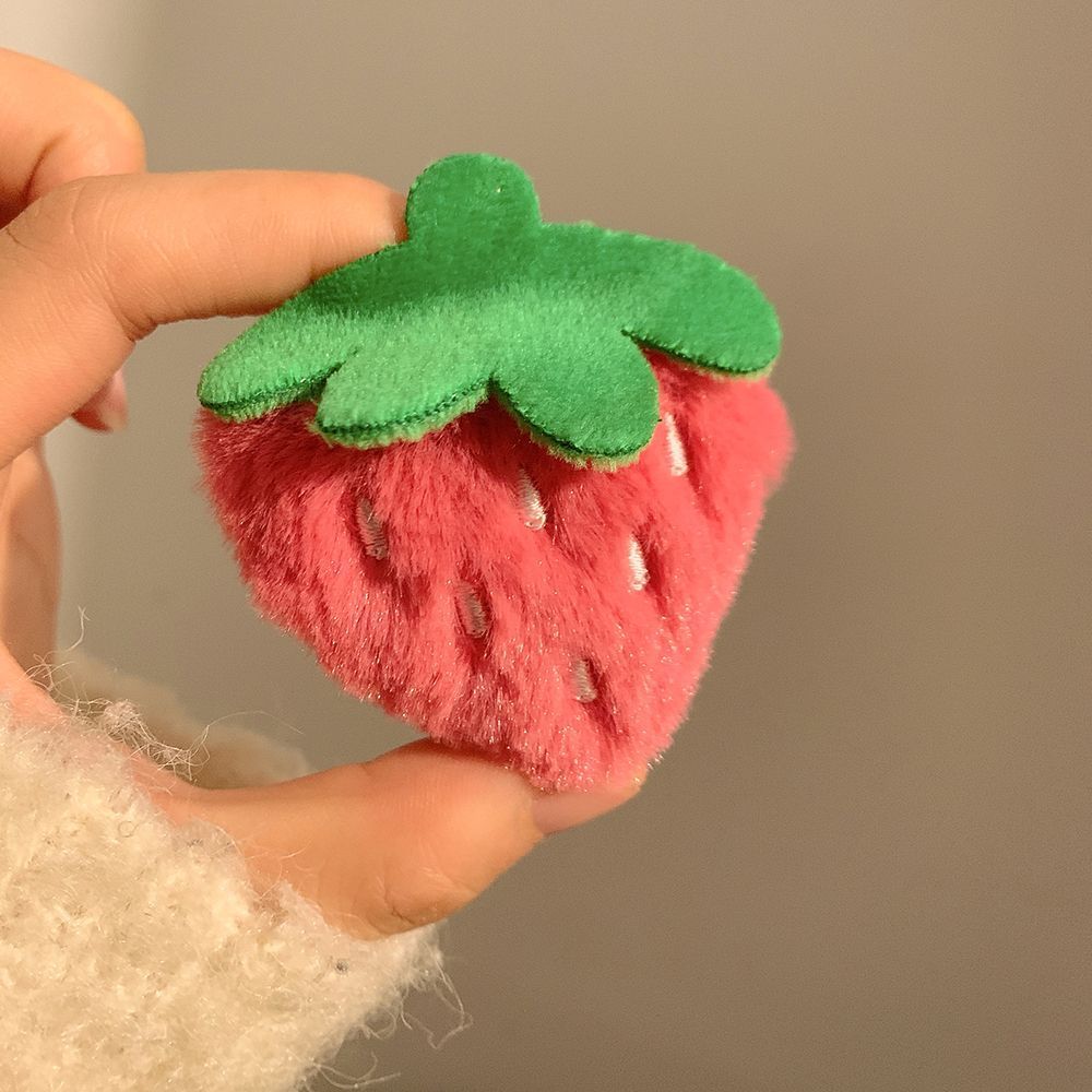 Милая розовая плюшевая клубника заколка Мягкая Милая челка зажим Сладкая красота головной убор утконоса заколка аксессуары для волос