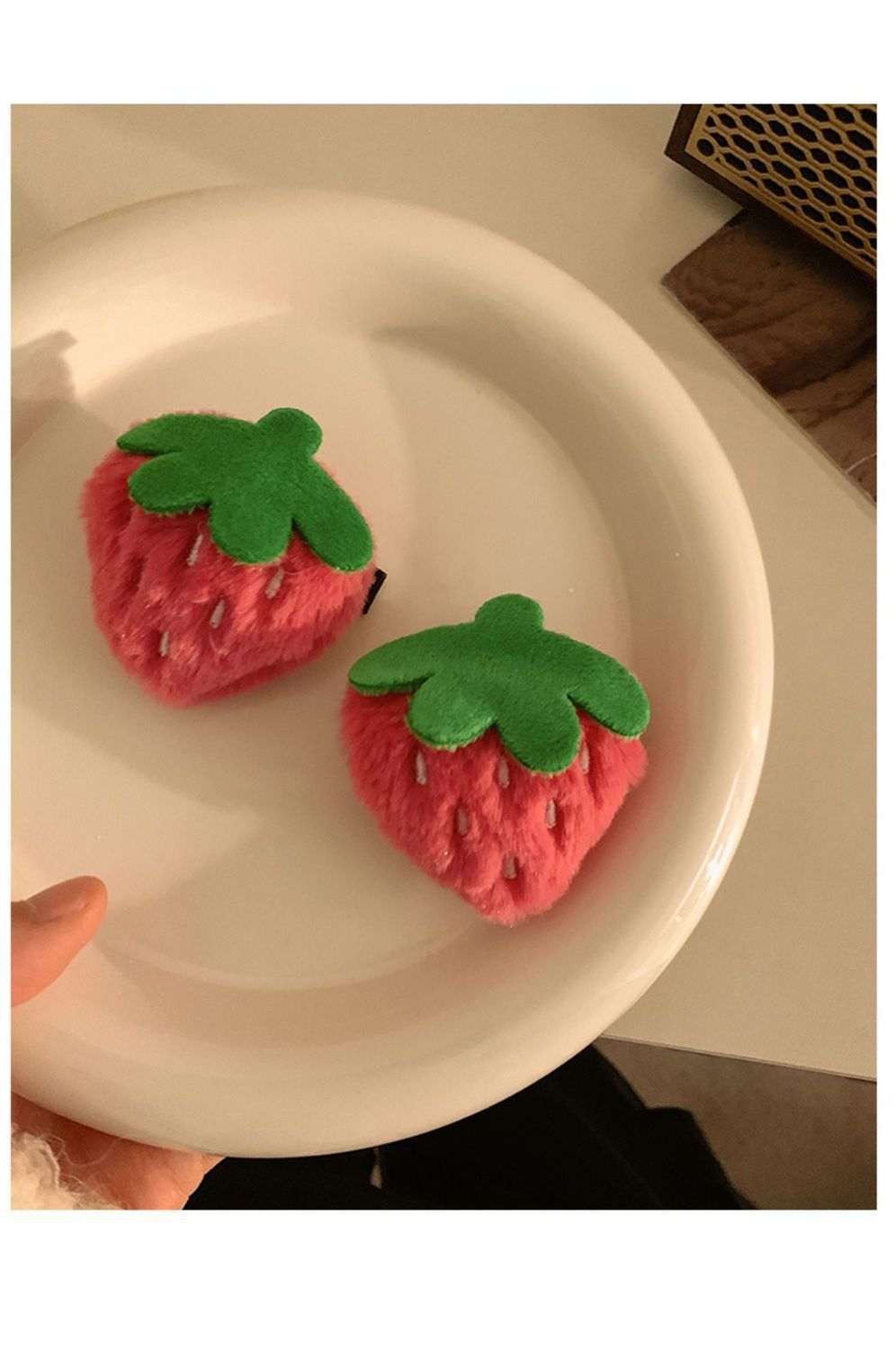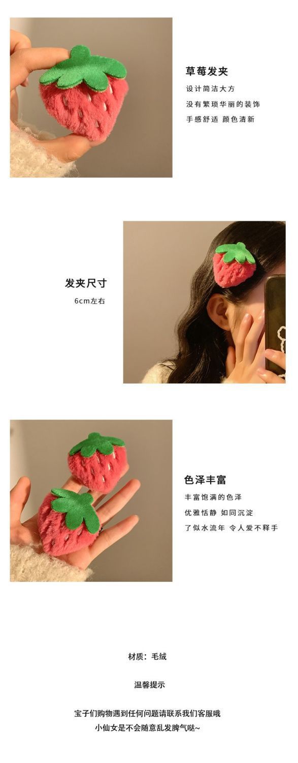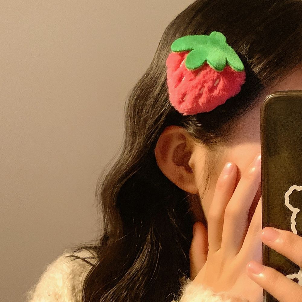 Милая розовая плюшевая клубника заколка Мягкая Милая челка зажим Сладкая красота головной убор утконоса заколка аксессуары для волос