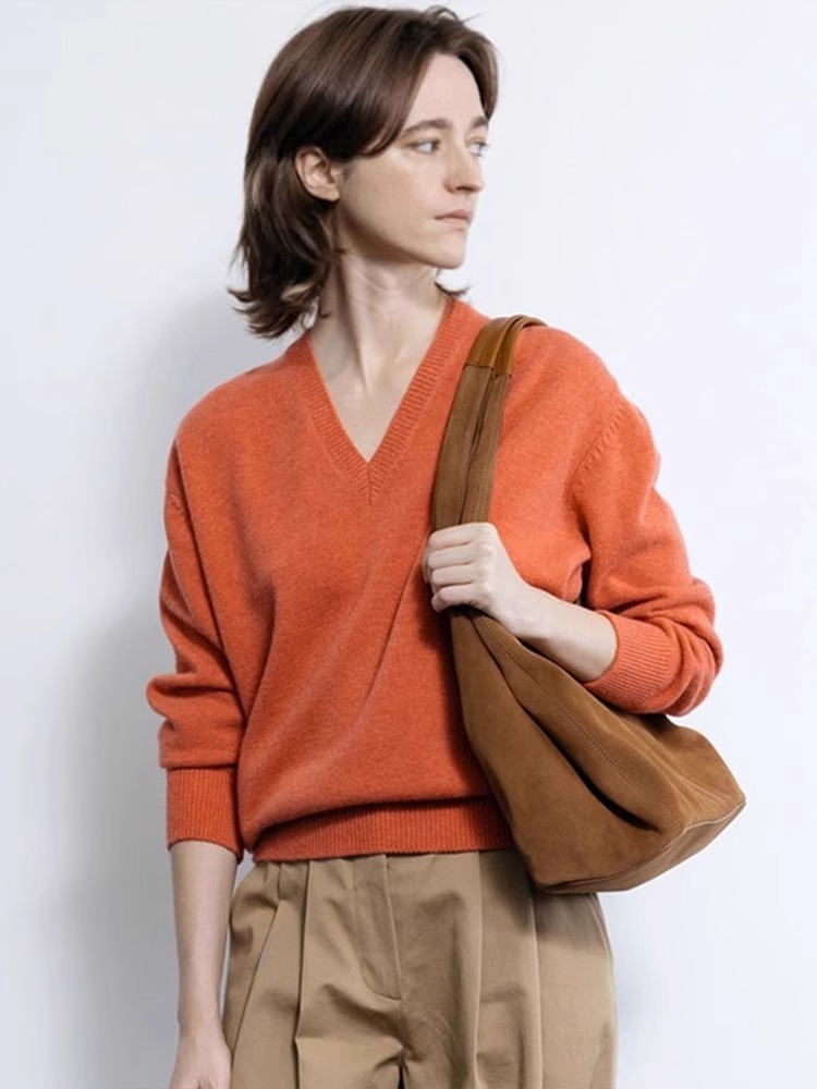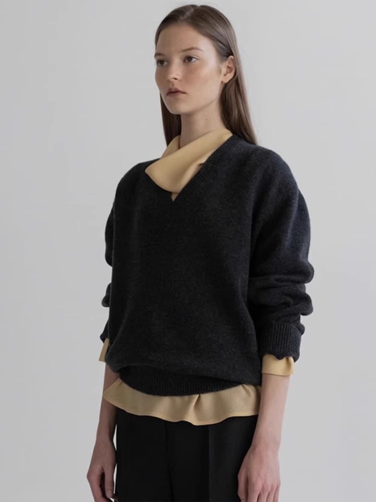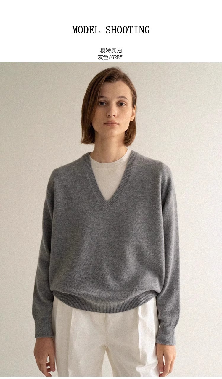 MO * NDAL женский трикотаж с v-образным вырезом, весна-осень 2022, новый стиль, ленивый стиль, серый шерстяной трикотаж для женщин