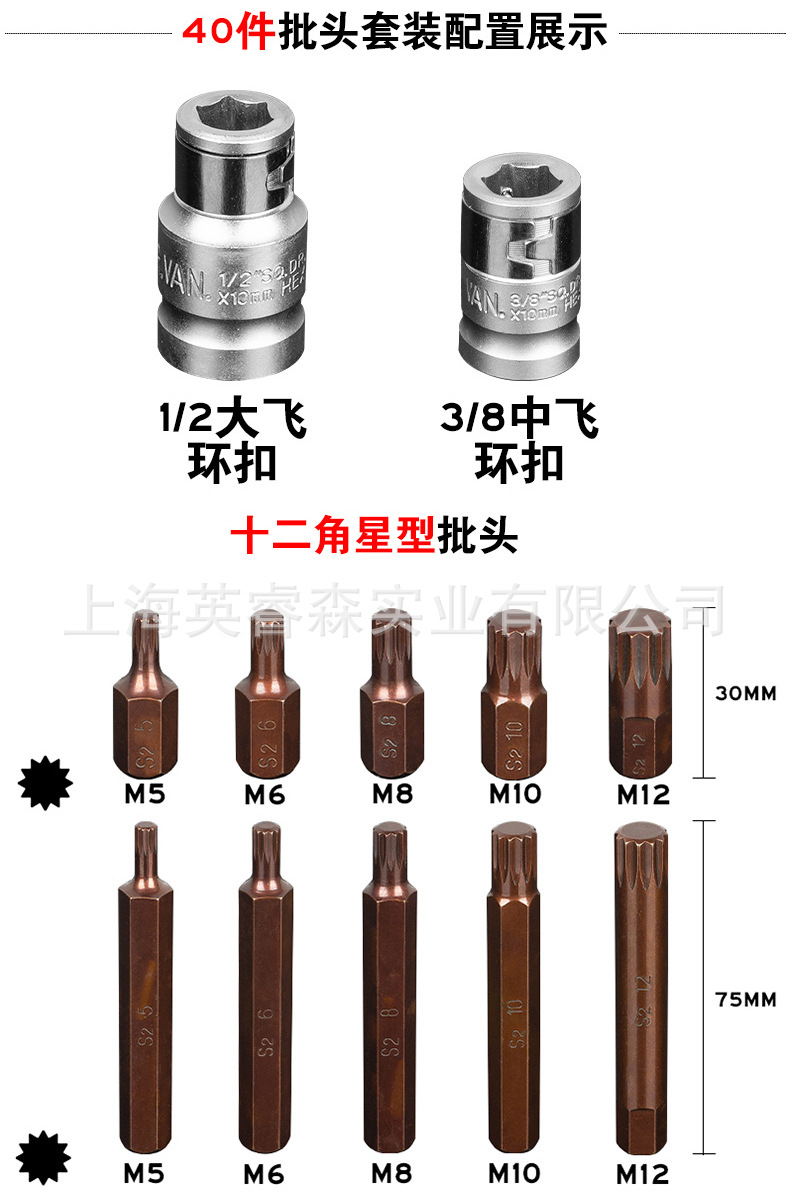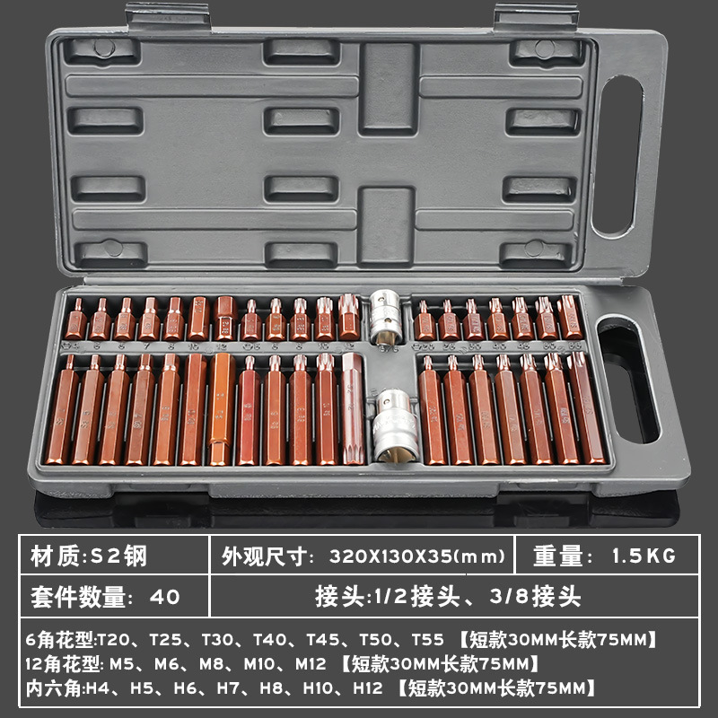 Набор из 40 предметов S2 стальной Звездный костюм с шестиугольным сплайном, комплект дозирующей головки, двенадцатиугольная головка звезды цветения сливы