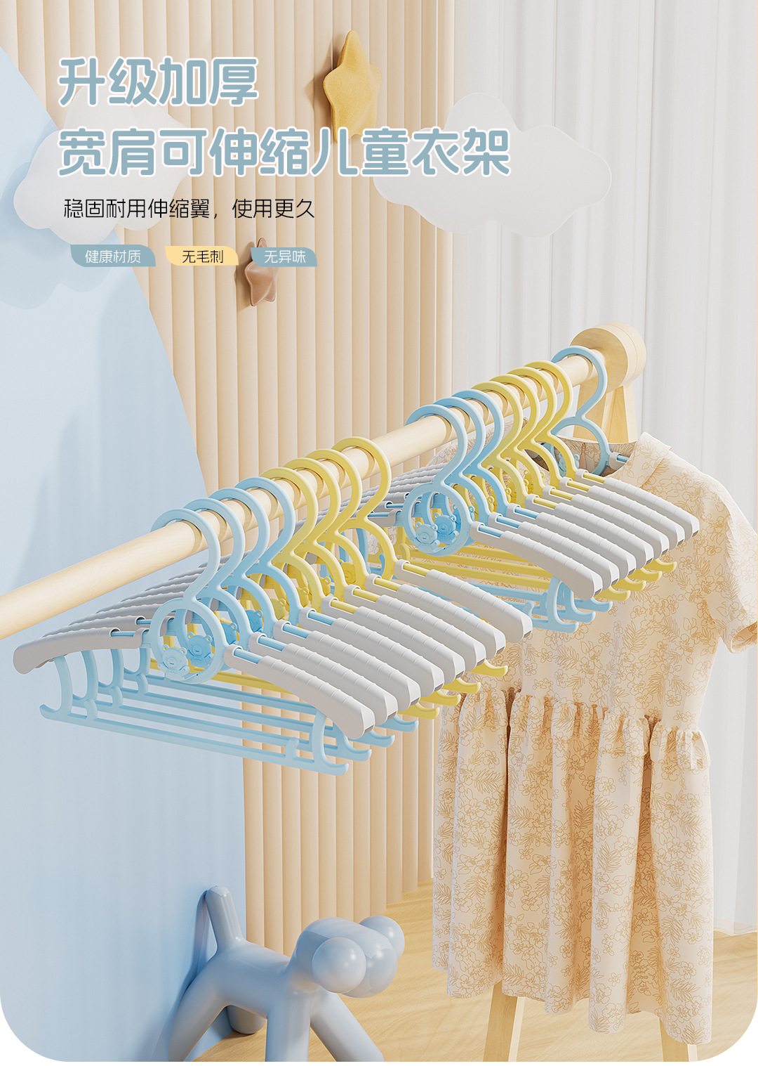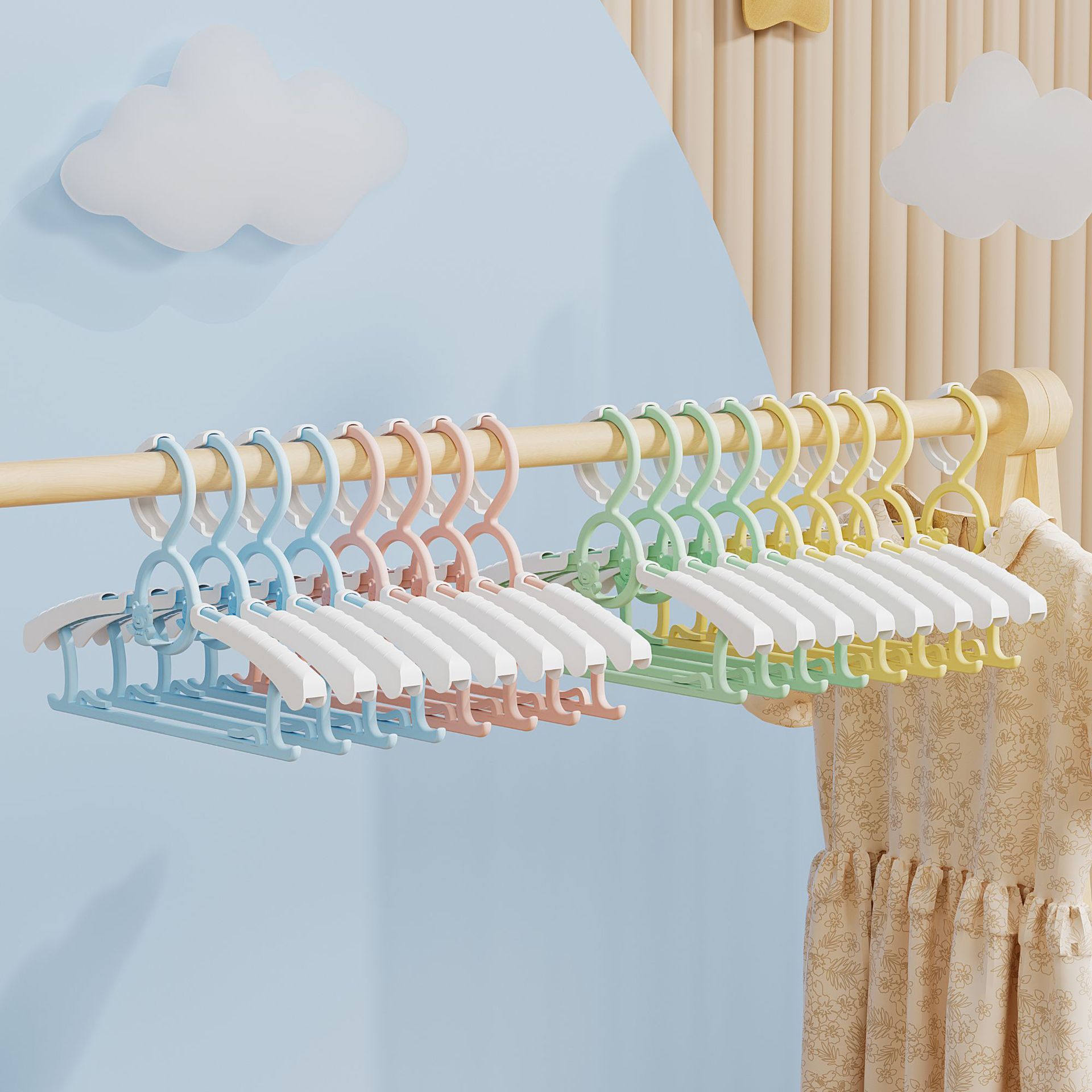 Регулируемая пластиковая сушилка для детской одежды, бытовая вешалка для одежды с мультяшным медведем, регулируемая, многоярусная, оптом