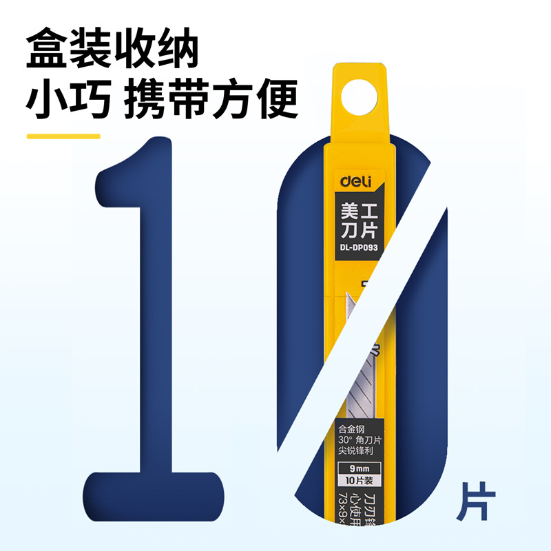 Deli 7 режущая головка художественное лезвие/лезвие для резки бумаги 10 штук 30 ° угол серебряное лезвие 9 мм DL-DP093