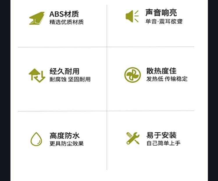 5-проводной динамик «Три в одном»/шт.; 6-проводной динамик четыре в одном/шт.; Небольшой Реверсивный Рог 12 В; 48-60V маленький Реверсивный Рог; Малый инструмент свет рога; Большой инструмент свет Рог; Самопроверяющийся динамик 48-60 В; 12 В голосовой Реверсивный динамик/шт.; 48-60 В Реверсивный звуковой сигнал/шт.