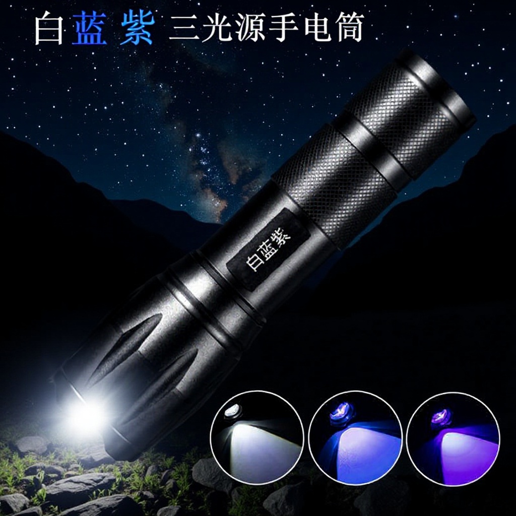 Синий, белый и фиолетовый три индикатора (встроенная литиевая батарея 18650); Фиолетовый и белый свет (встроенный литиевый аккумулятор 18650)