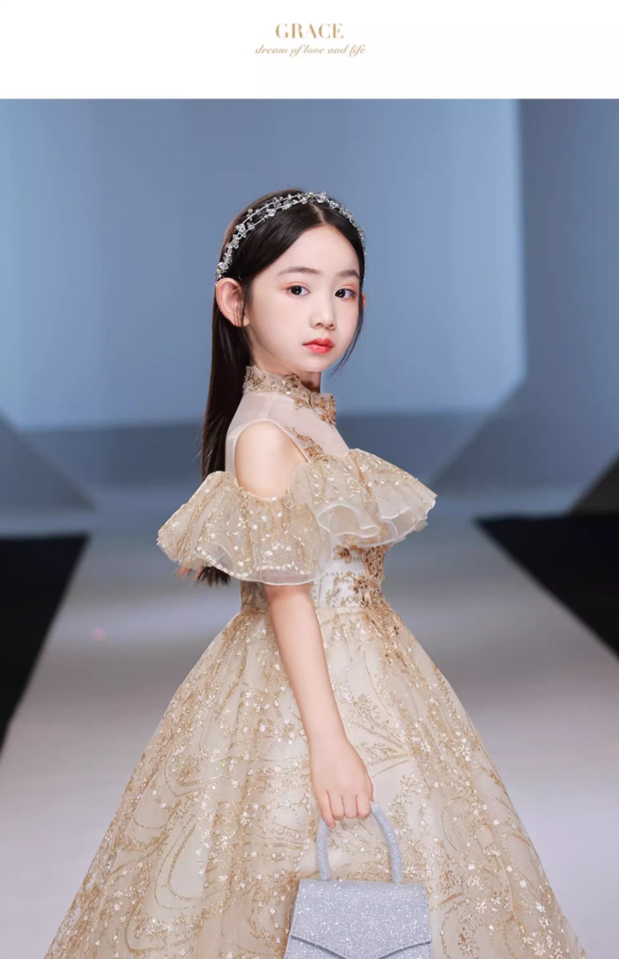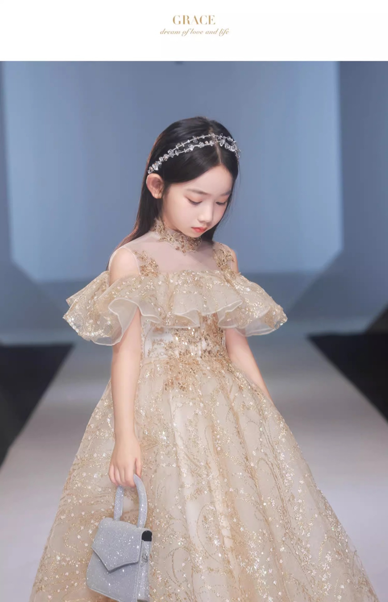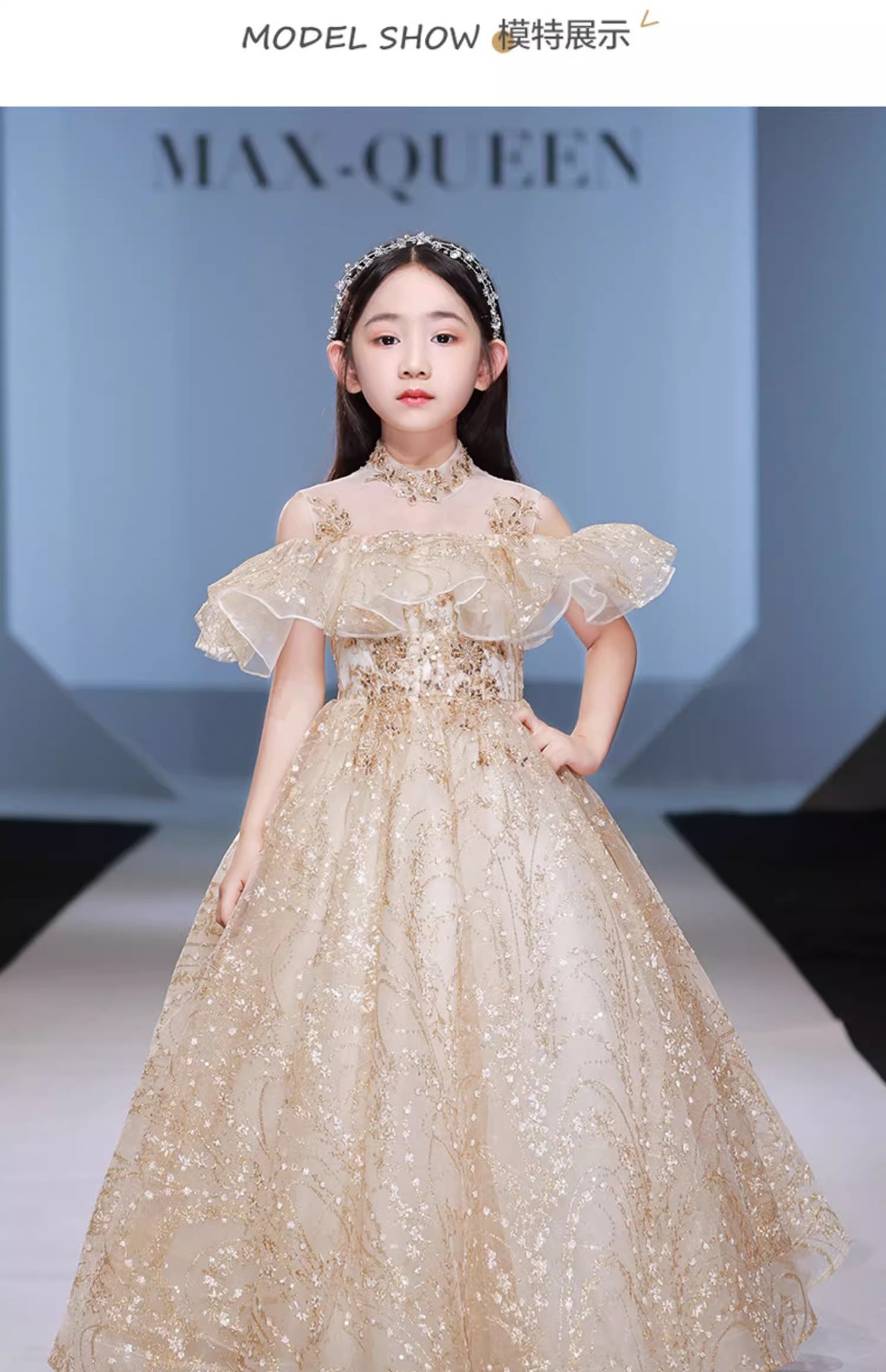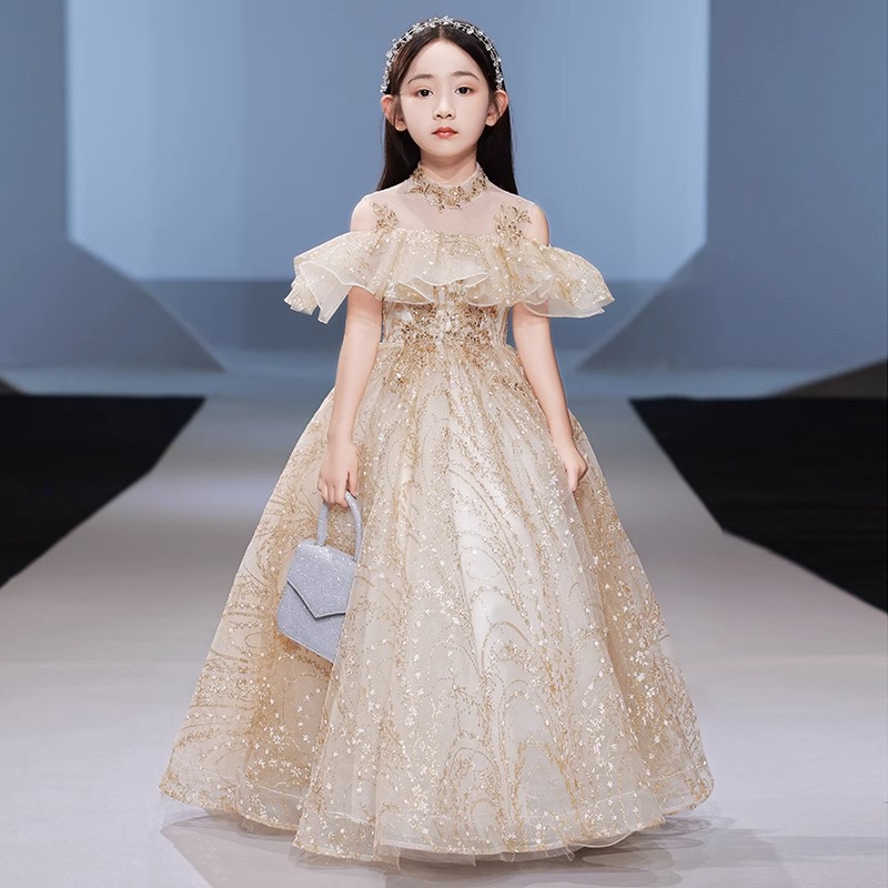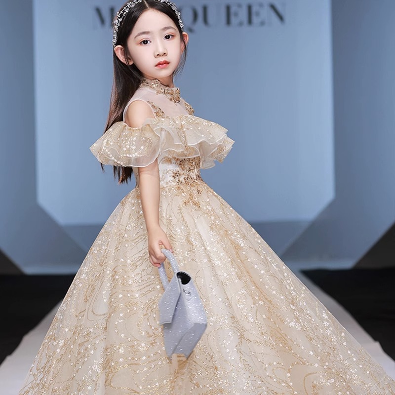 Детское платье, платье принцессы, ведущая, Элитная легкая Роскошная нишевая детская модель, платье для выступлений на пианино для подиума