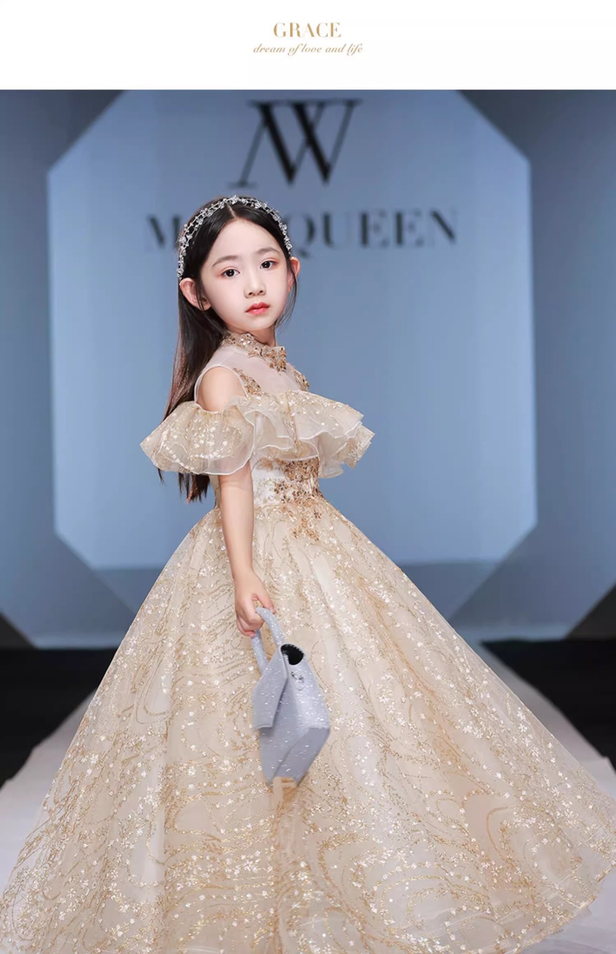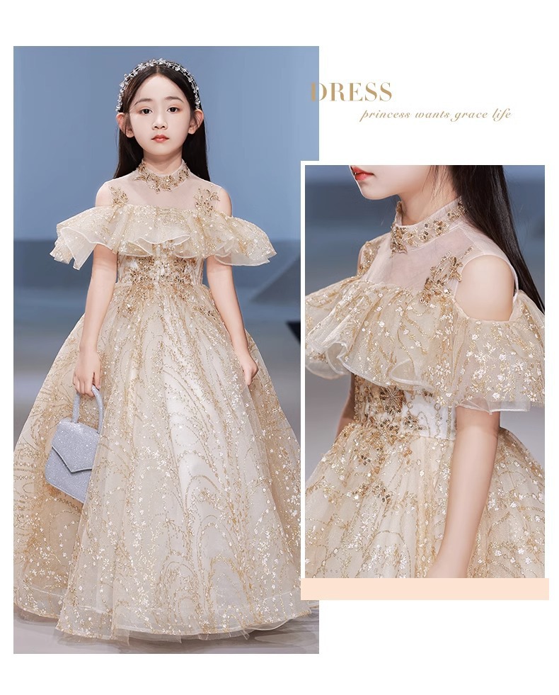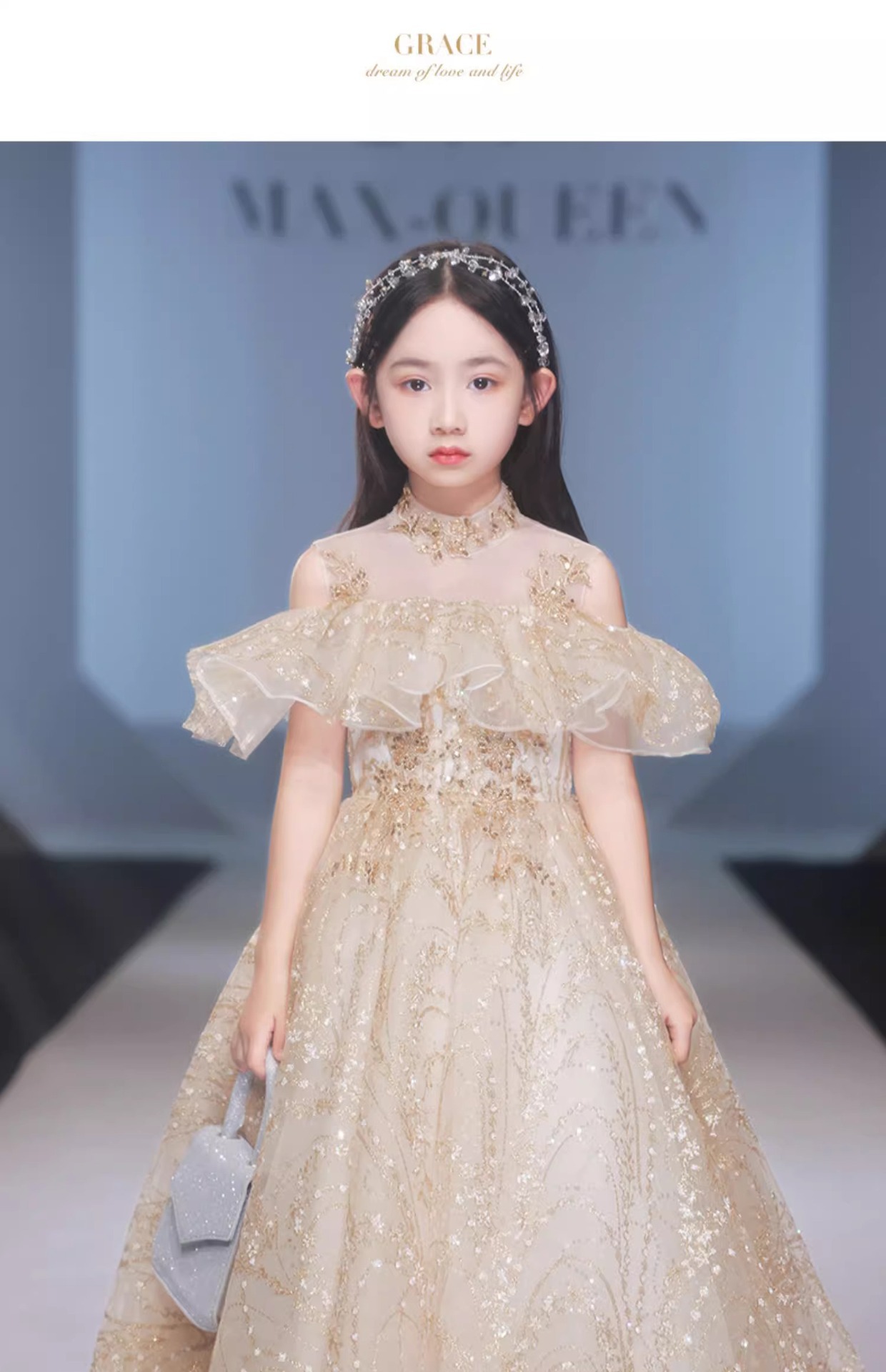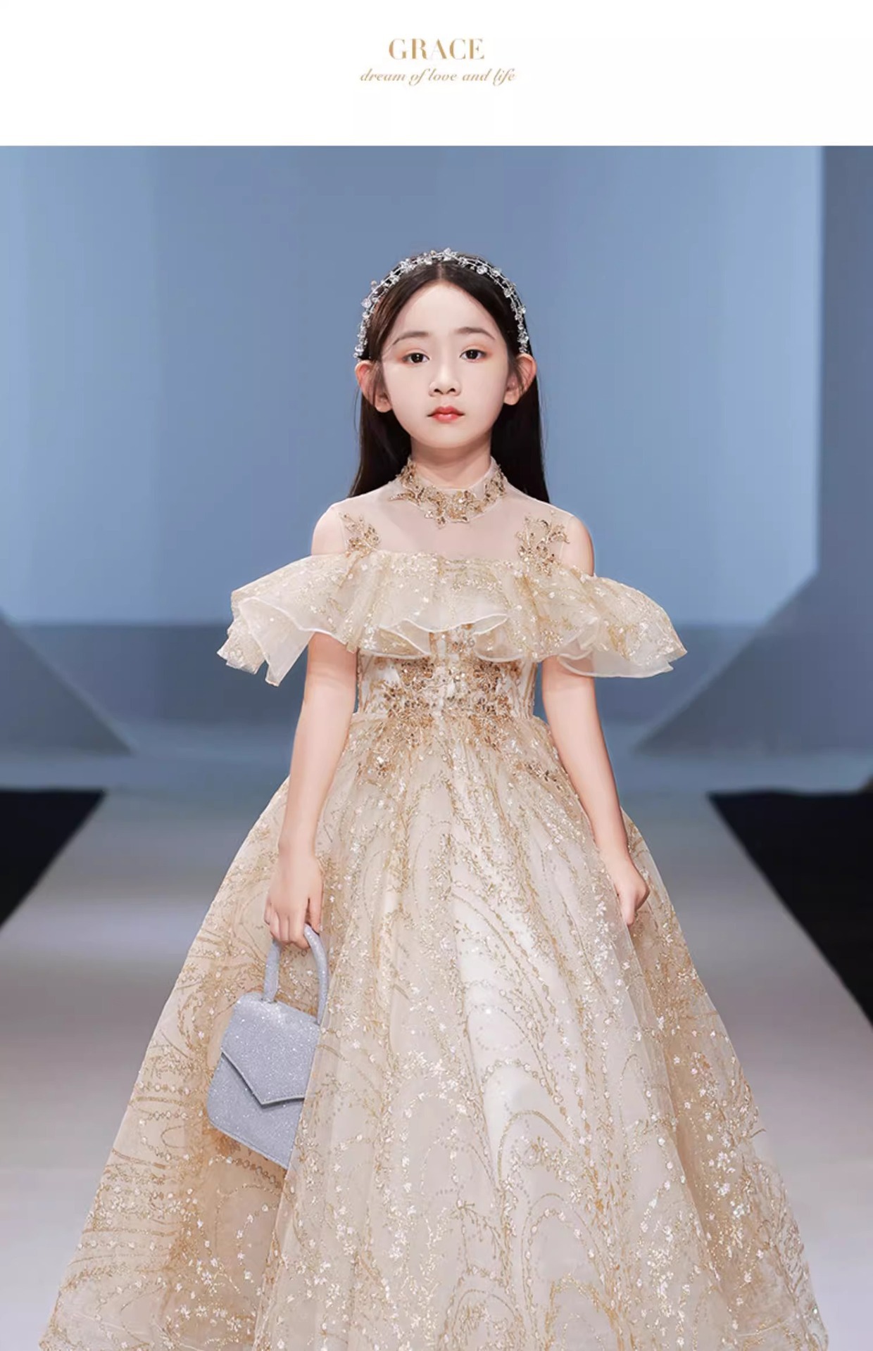 Детское платье, платье принцессы, ведущая, Элитная легкая Роскошная нишевая детская модель, платье для выступлений на пианино для подиума