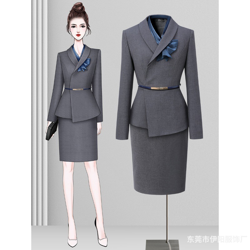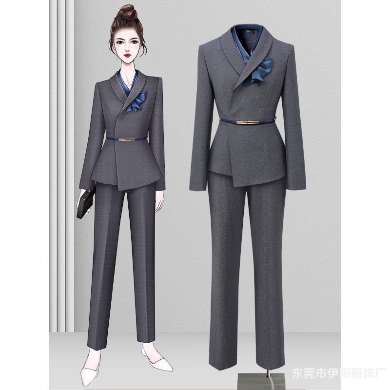 Профессиональный костюм женский осенне-зимний высококачественный серый костюм формальная одежда Модный Западный стиль косметолог кабинет сестра ювелирный магазин комбинезоны