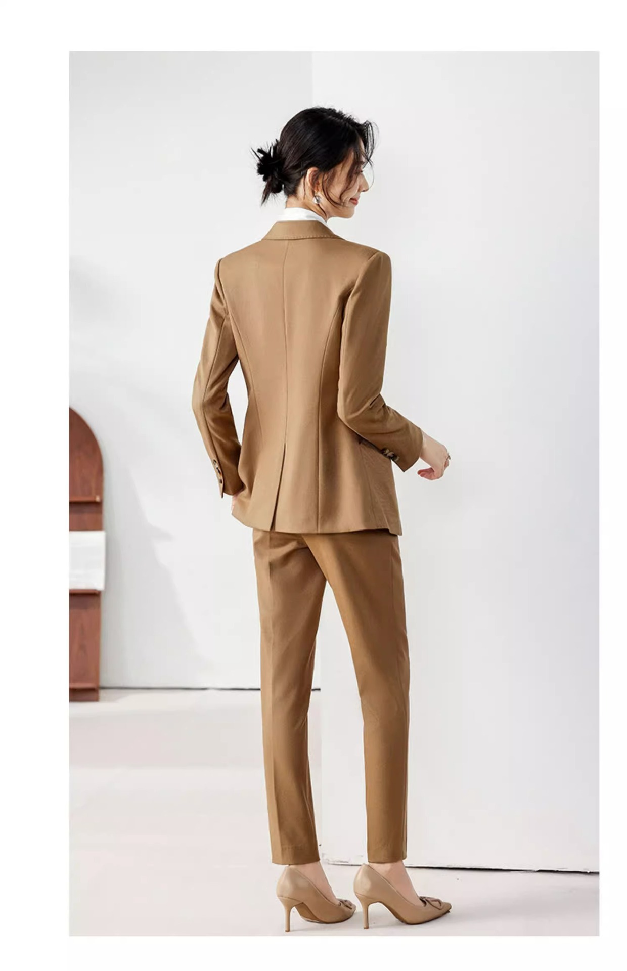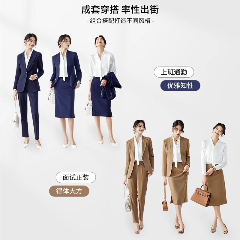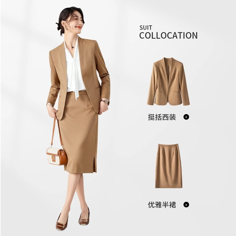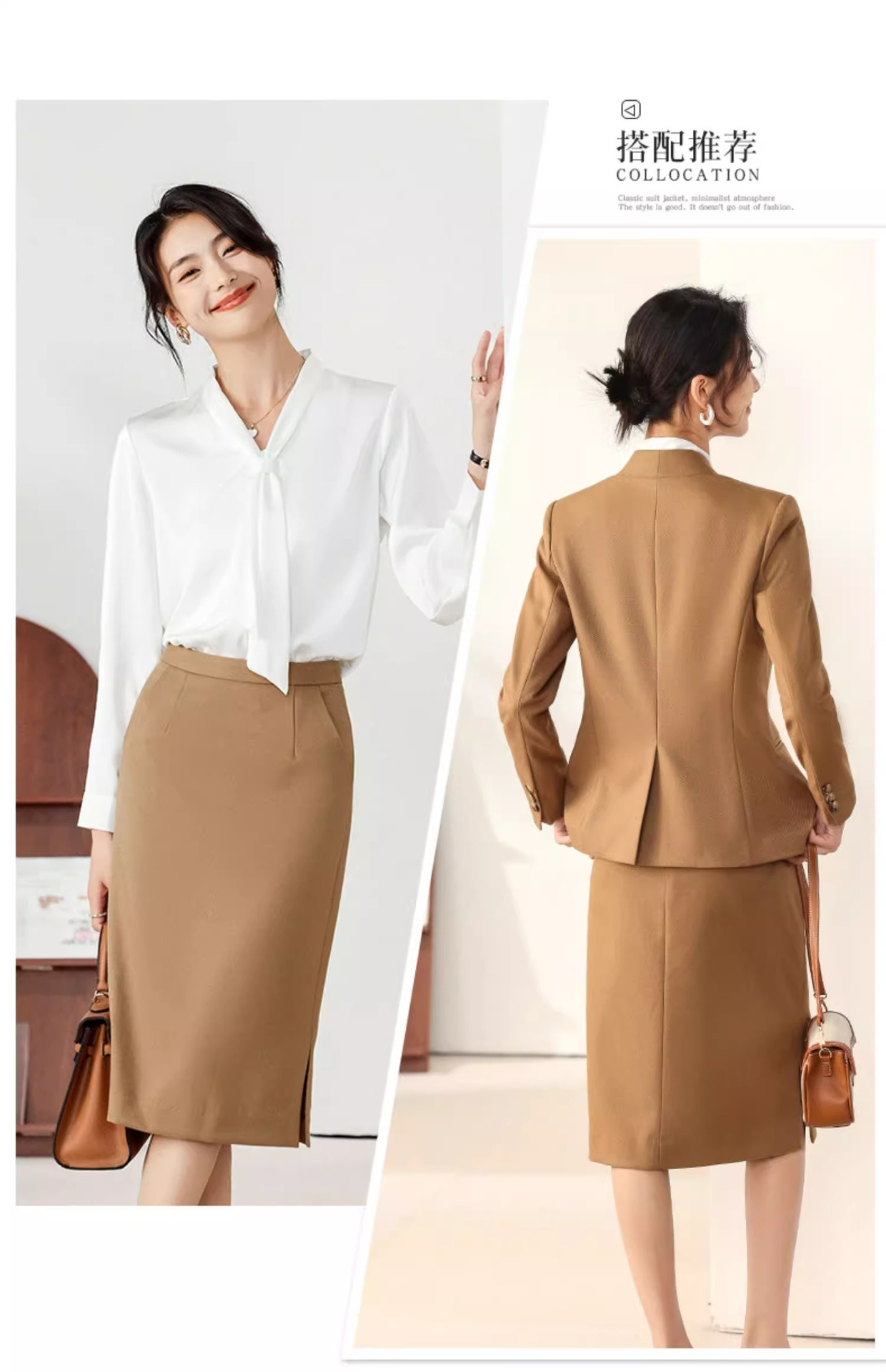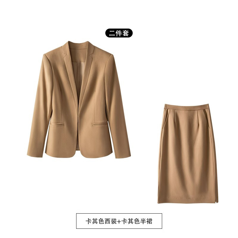Костюм цвета хаки с длинными рукавами и круглым вырезом; Одинарная юбка цвета хаки; одна пара брюк цвета хаки; Костюм + юбка цвета хаки с длинными рукавами; Костюм хаки с длинными рукавами + брюки
