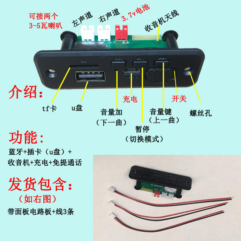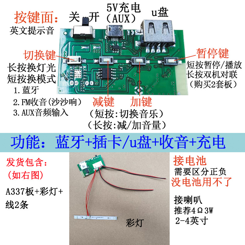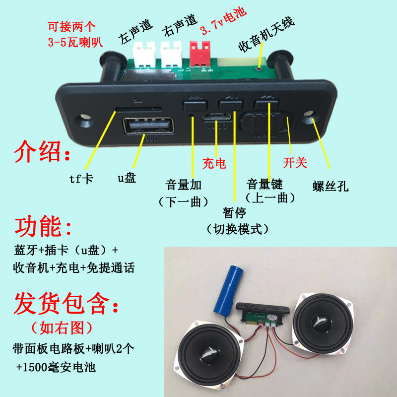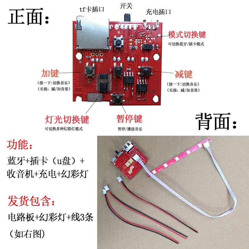3,7 В модуль Bluetooth аудио усилитель плата маленький динамик материнская плата DIY комплект аккумулятор динамик красочная световая печатная плата
