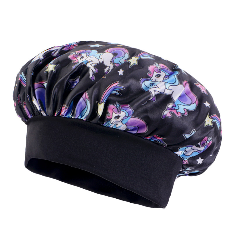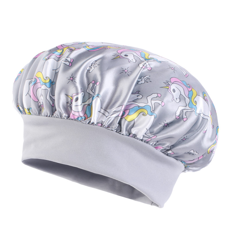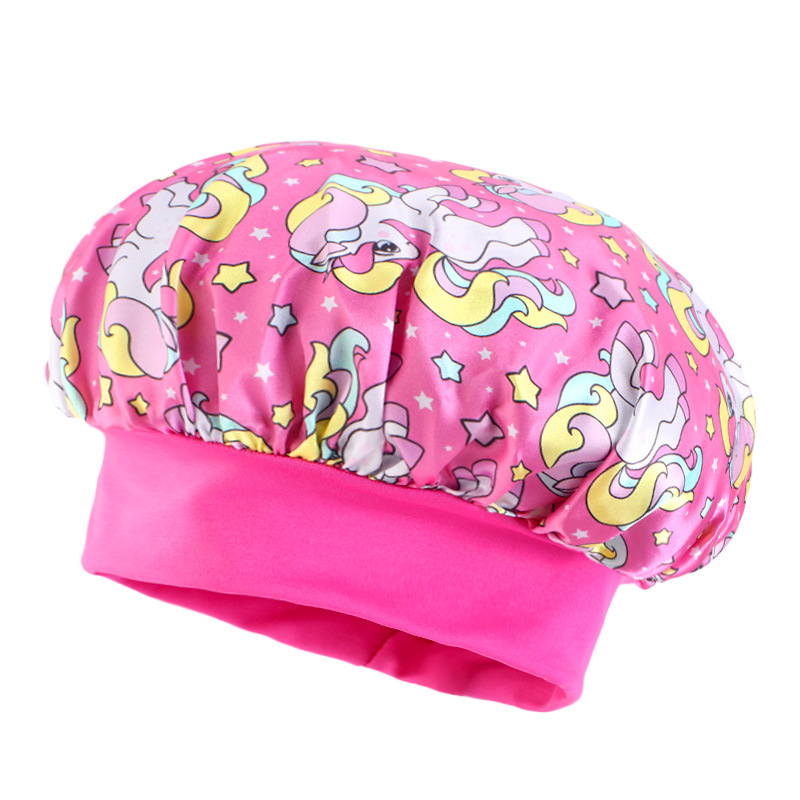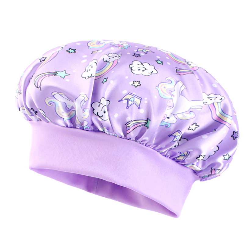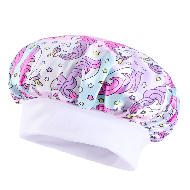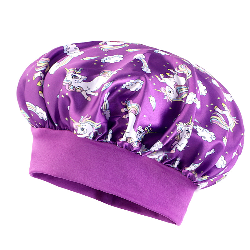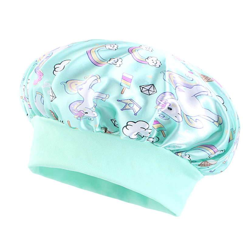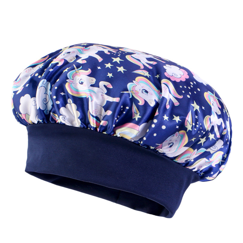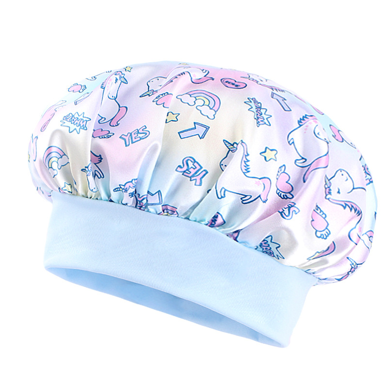 Трансграничная широкополая эластичная козырь единорог мультяшный принт детский цвет Дин шапка для сна ребенка шапка для ухода за волосами