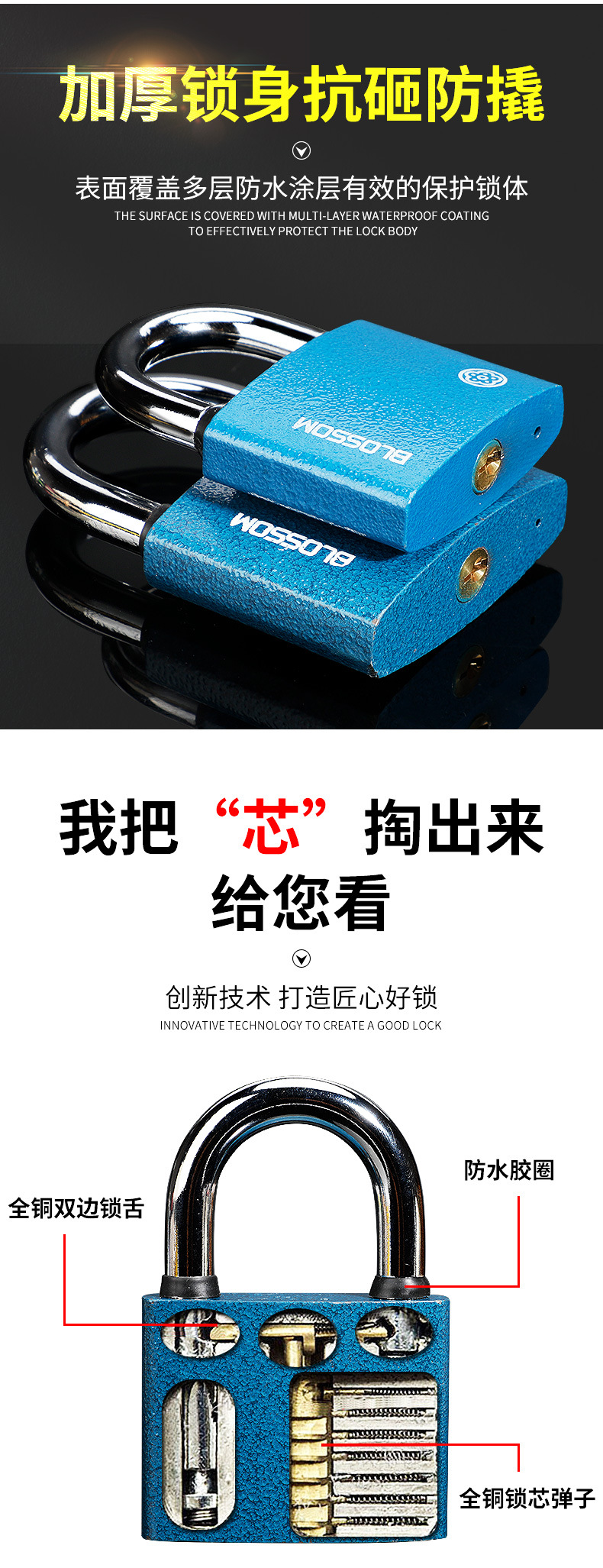 Сливовый замок Чистая медь замок цилиндровый замок Открытый медный замок синий водонепроницаемый антикоррозийный замок открытый замок шкаф склад железный замок