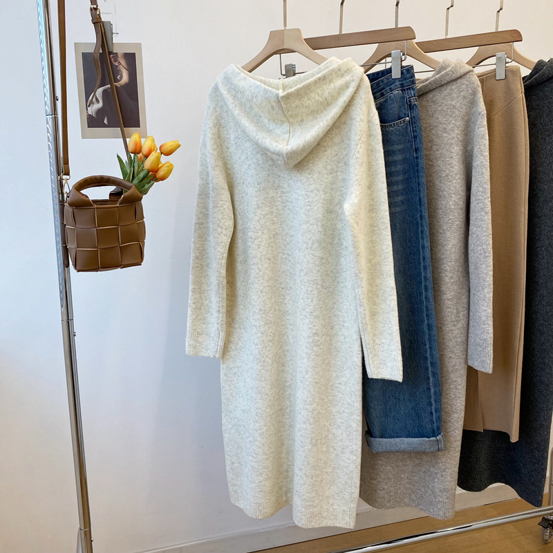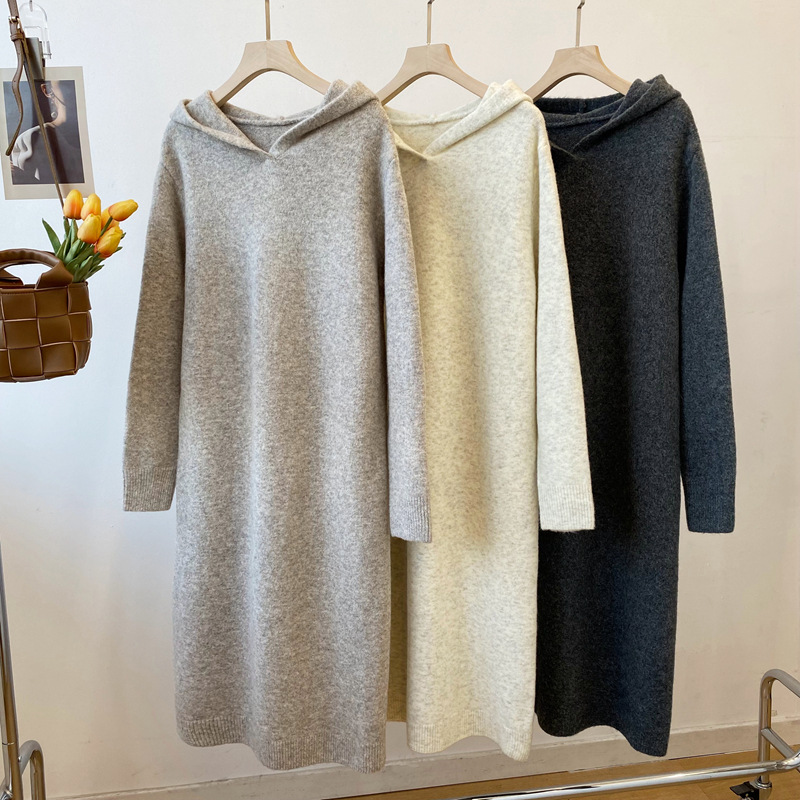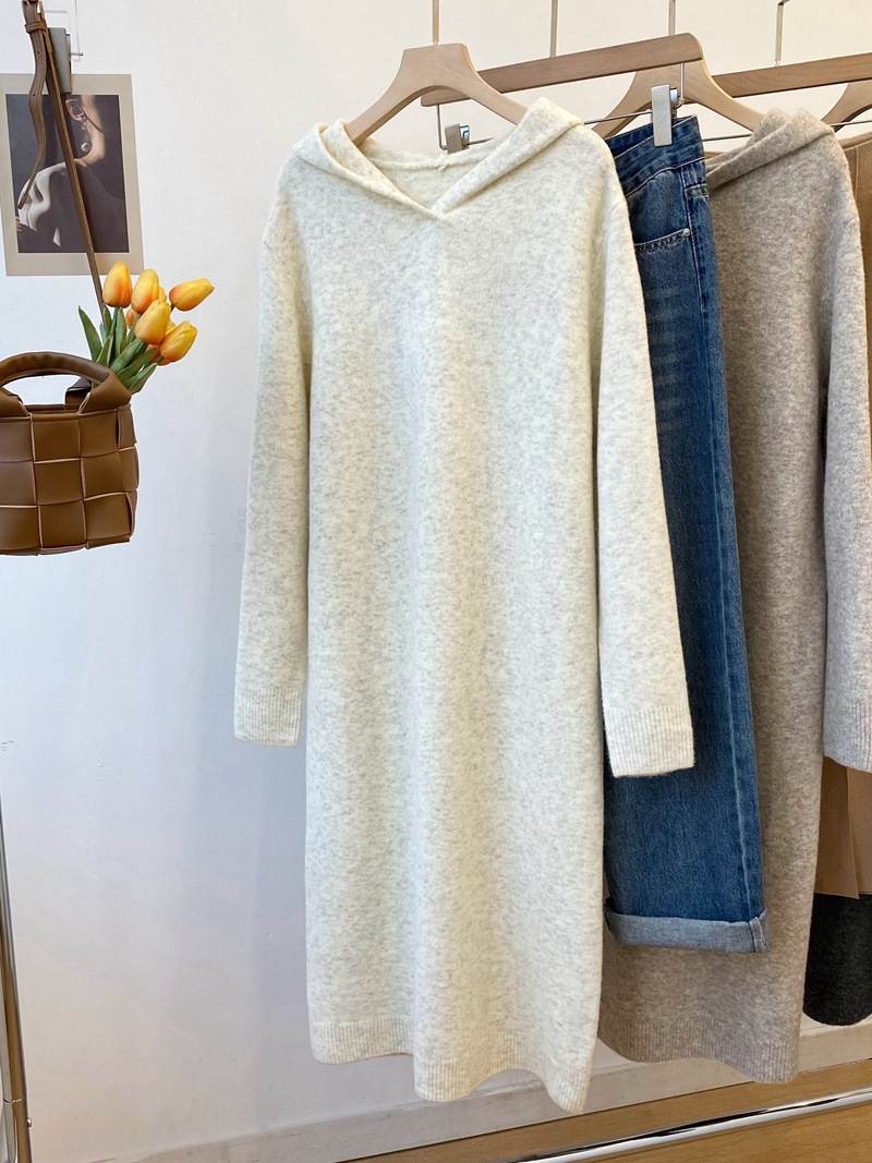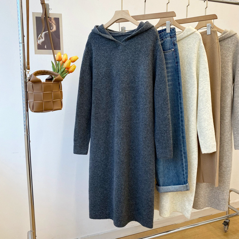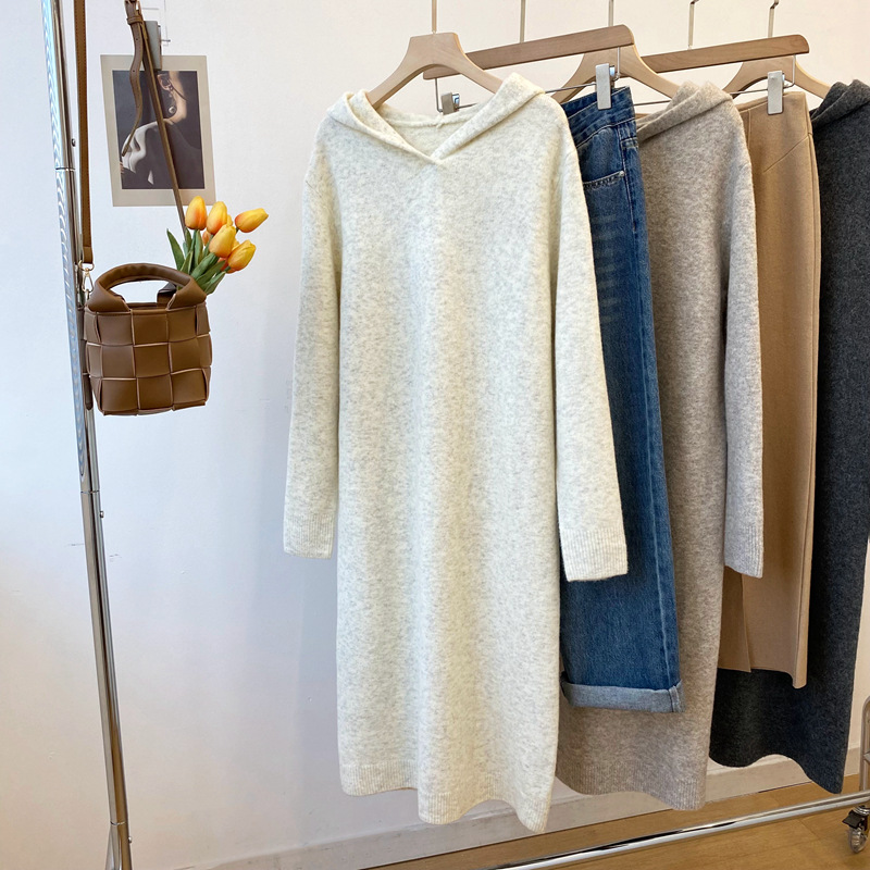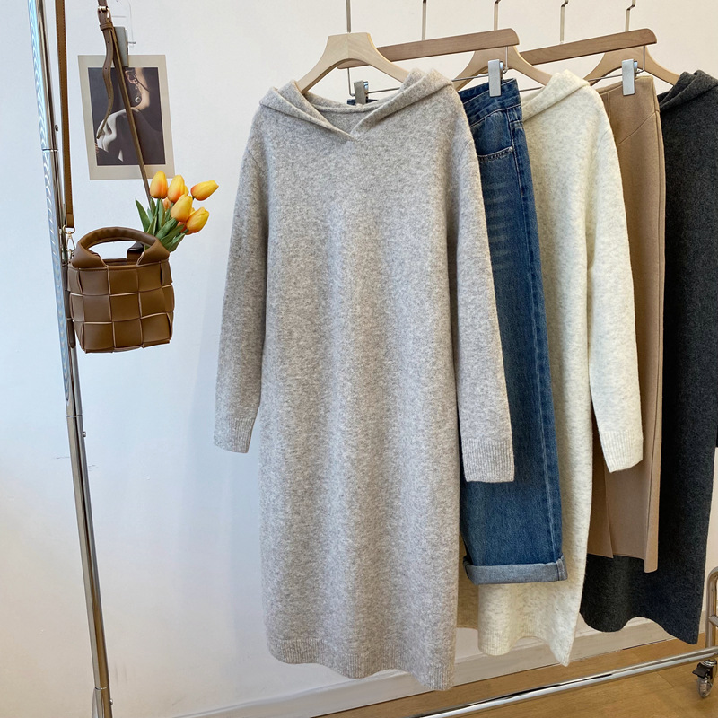Осень и зима новый корейский стиль с капюшоном трикотажное платье длинный свитер платье клейкий рис бархат анти пиллинг женский 2295
