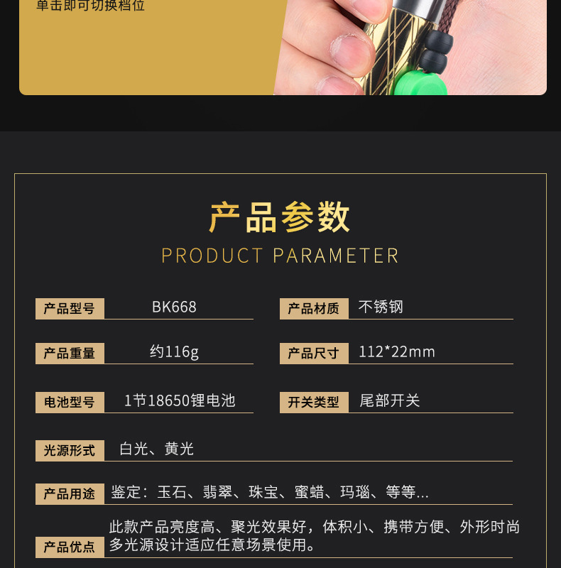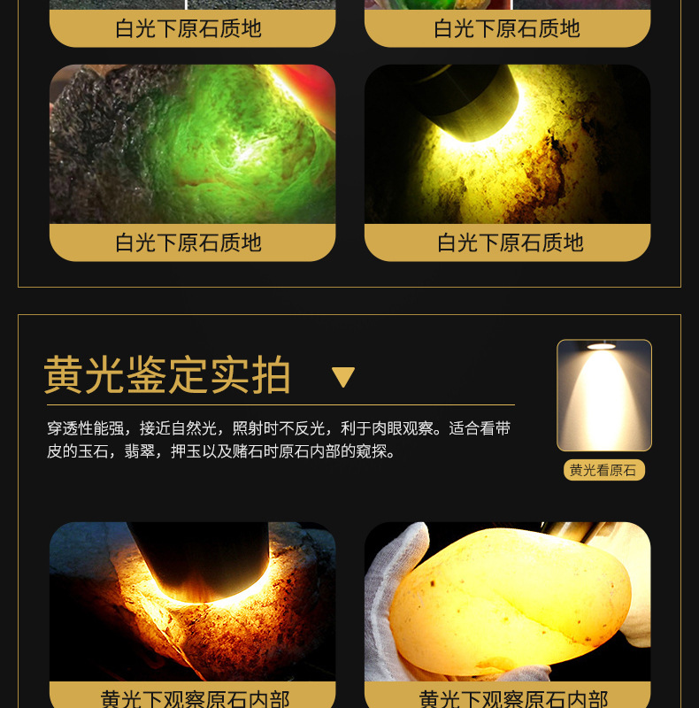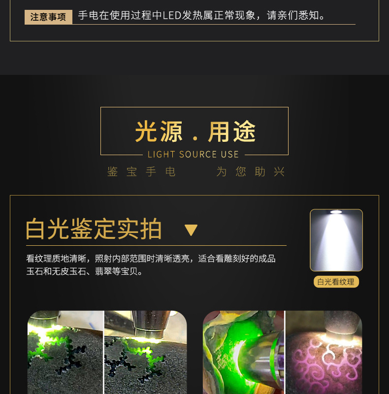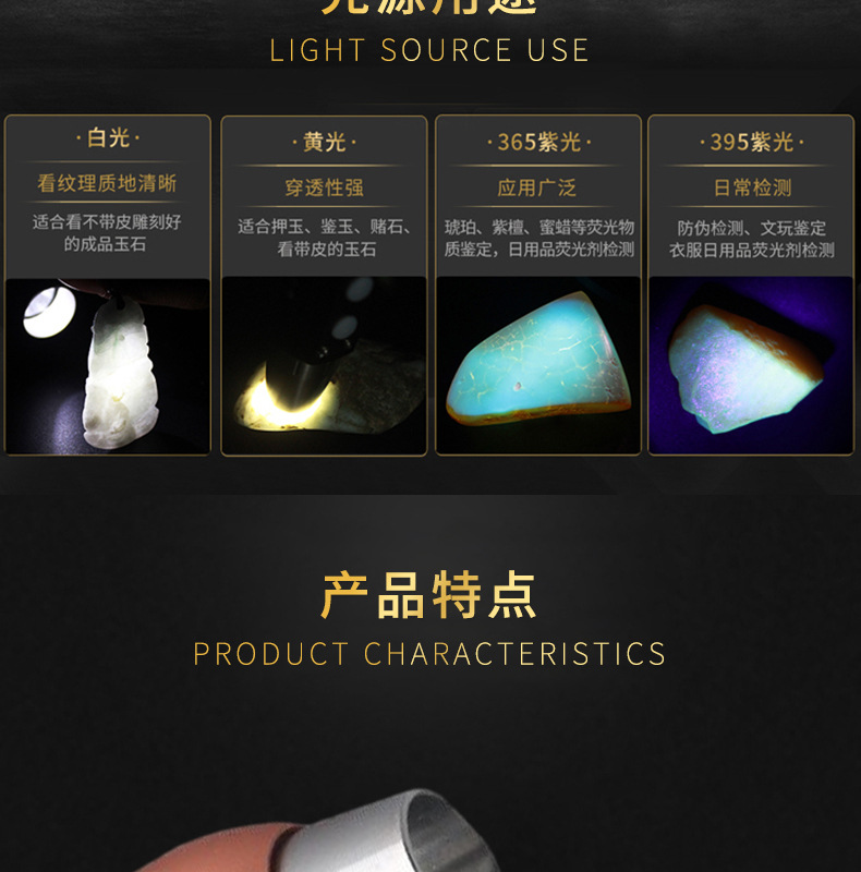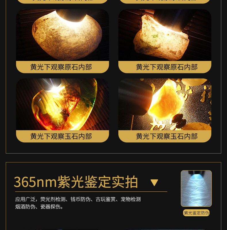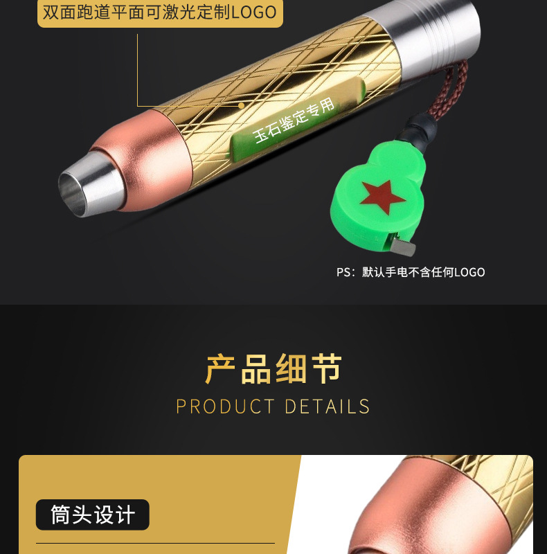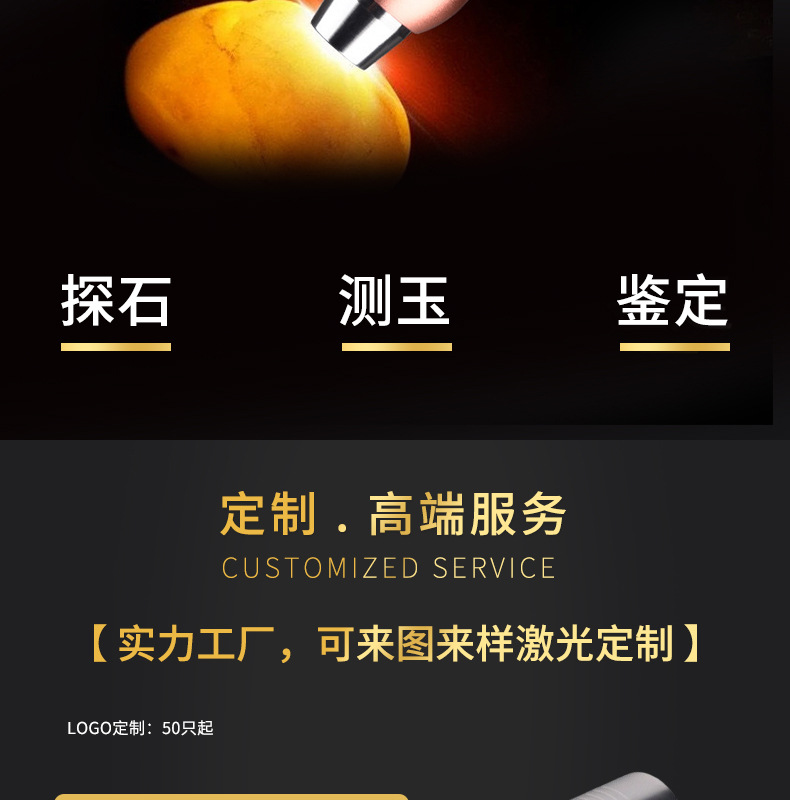 Нефритовый идентификационный фонарик завод в наличии Оптовые ювелирные изделия Нефритовый Профессиональный Сильный свет обнаружения Многофункциональный идентификационный фонарик