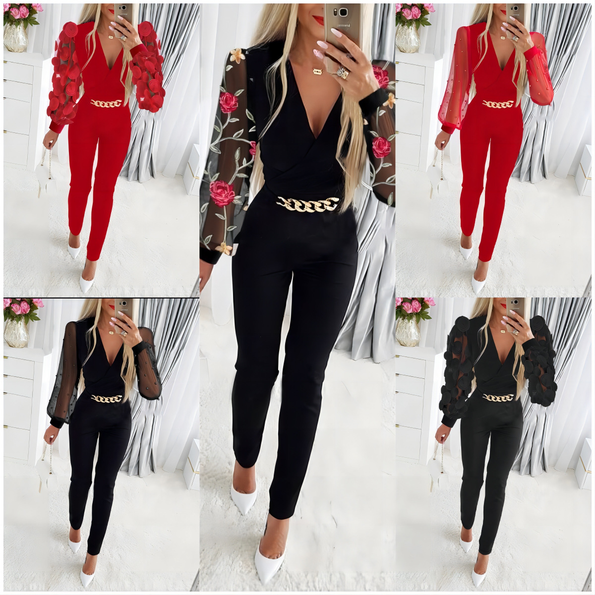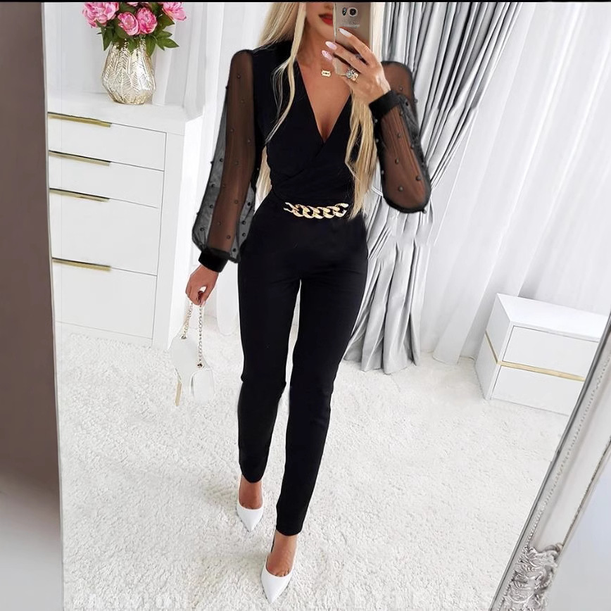 Высококачественный женский комбинезон из полиэстера весна 2024, милый и свежий, с модным декором из цепочек
