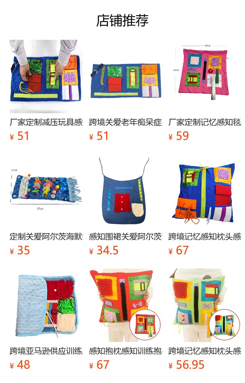 可用于感知记忆训练关爱阿尔兹海默症患者的玩具,产品用柔软亲肤的涤纶绒布制作而成。 |