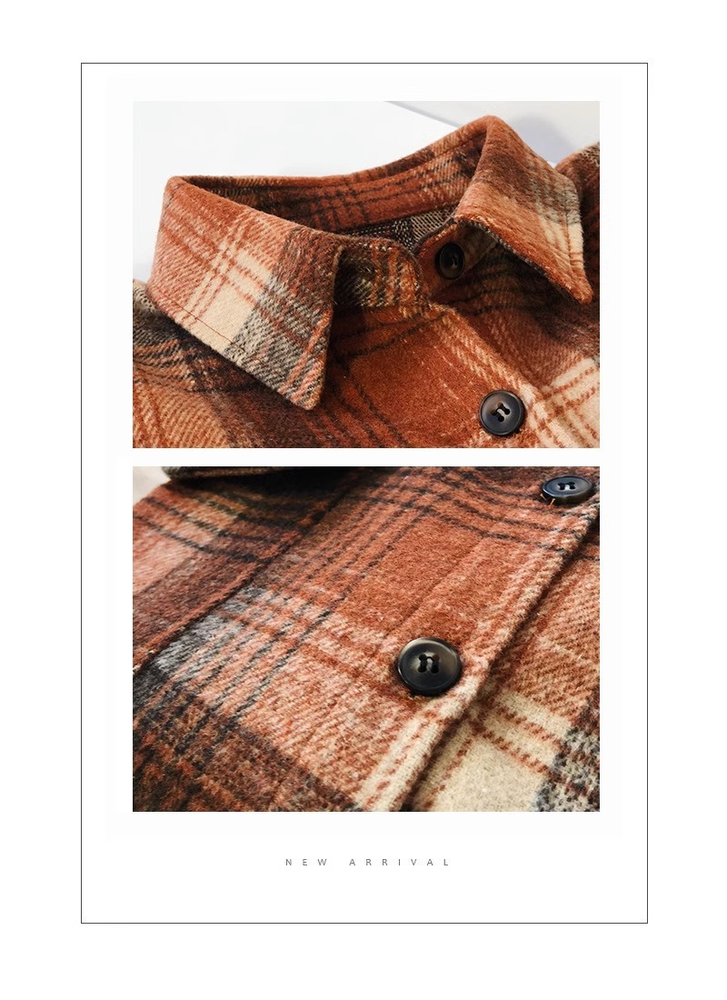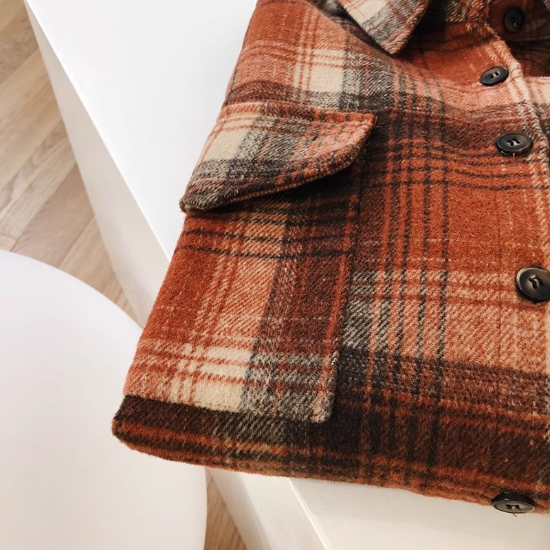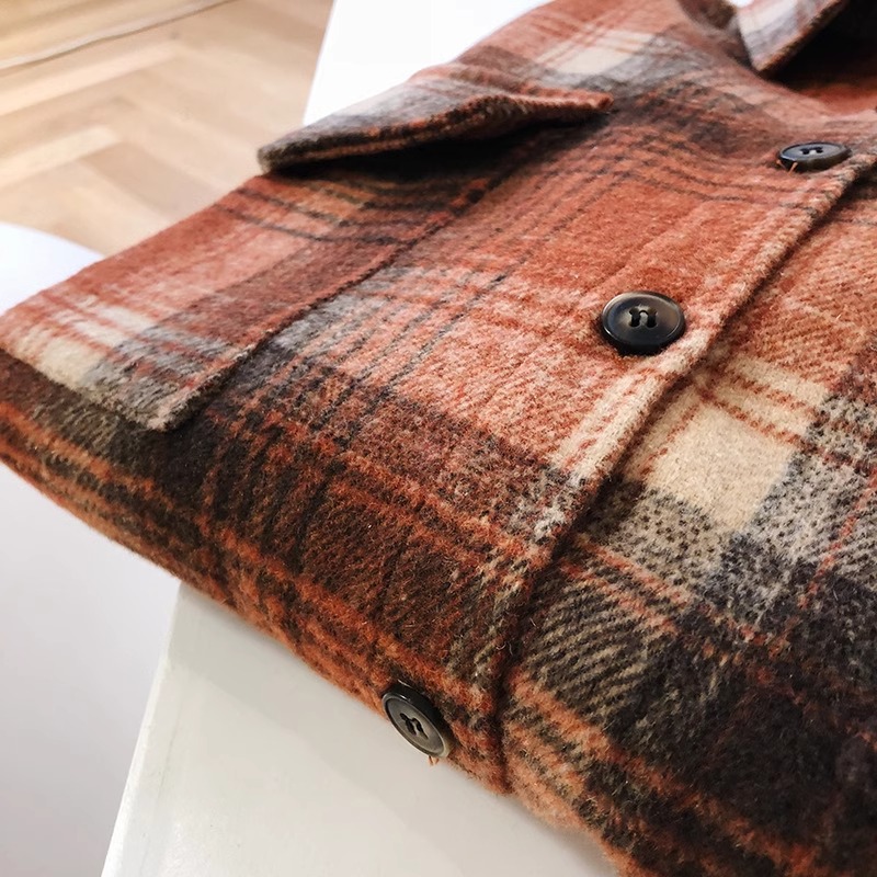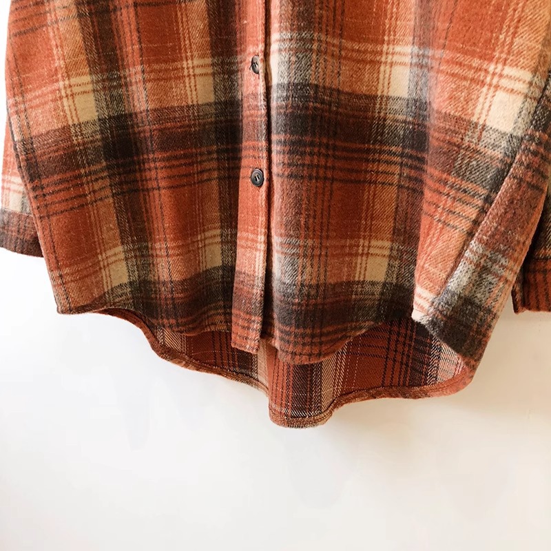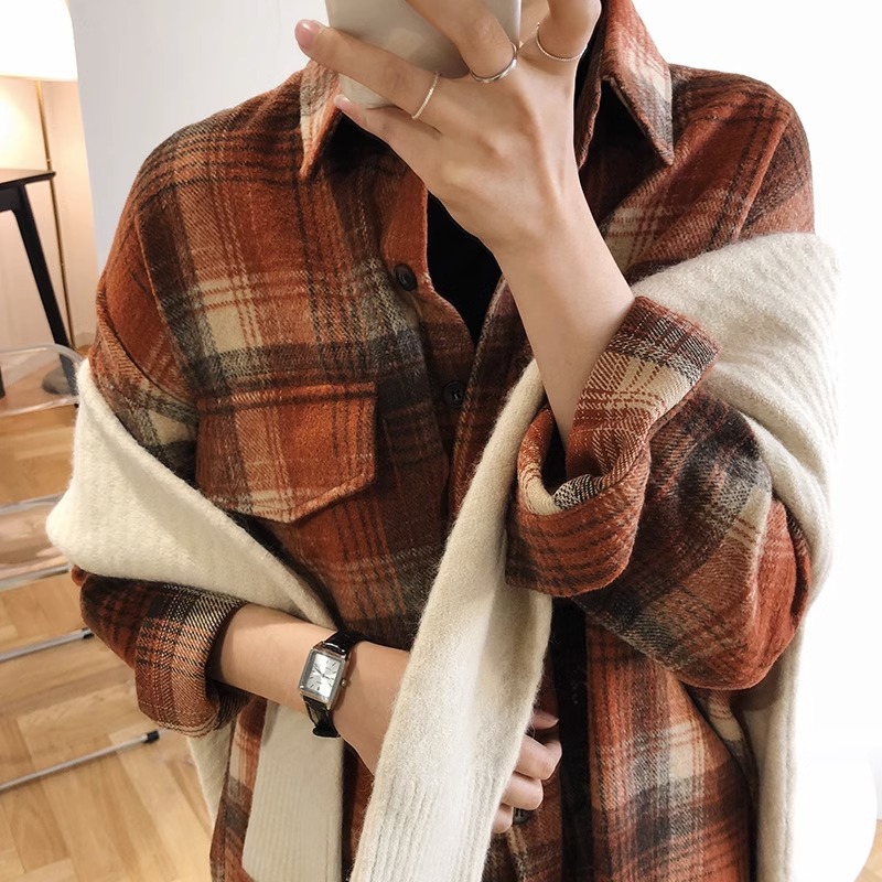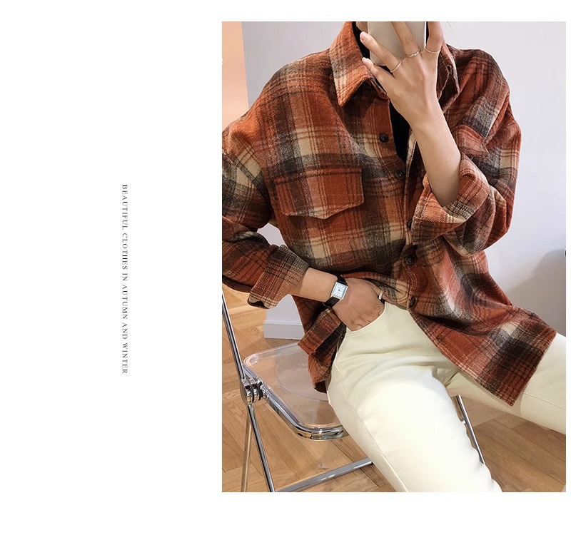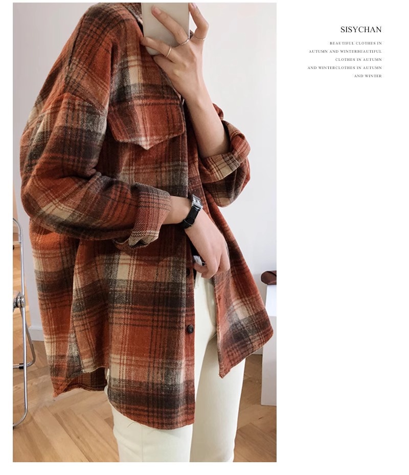 Рубашка в клетку из матового хлопка Женская средней длины 2023 осень новая свободная рубашка с длинным рукавом в Корейском стиле пальто толстая