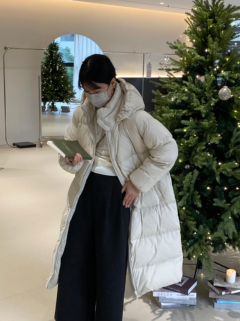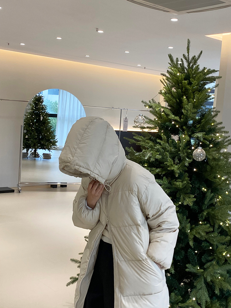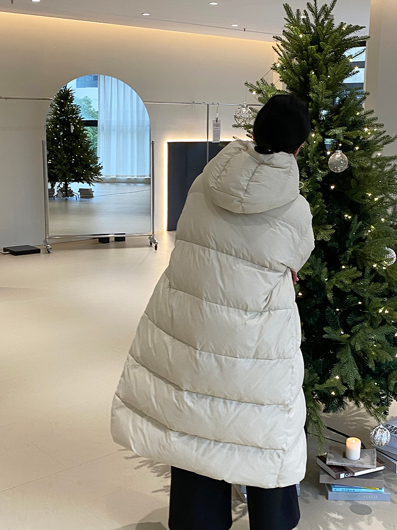 Основная продукция компании Jiangzuo ~ Длинный утепленный пуховик с капюшоном для женщин, 90% белый утиный пух, модель 1020 в корейском стиле, комфорт без давления.