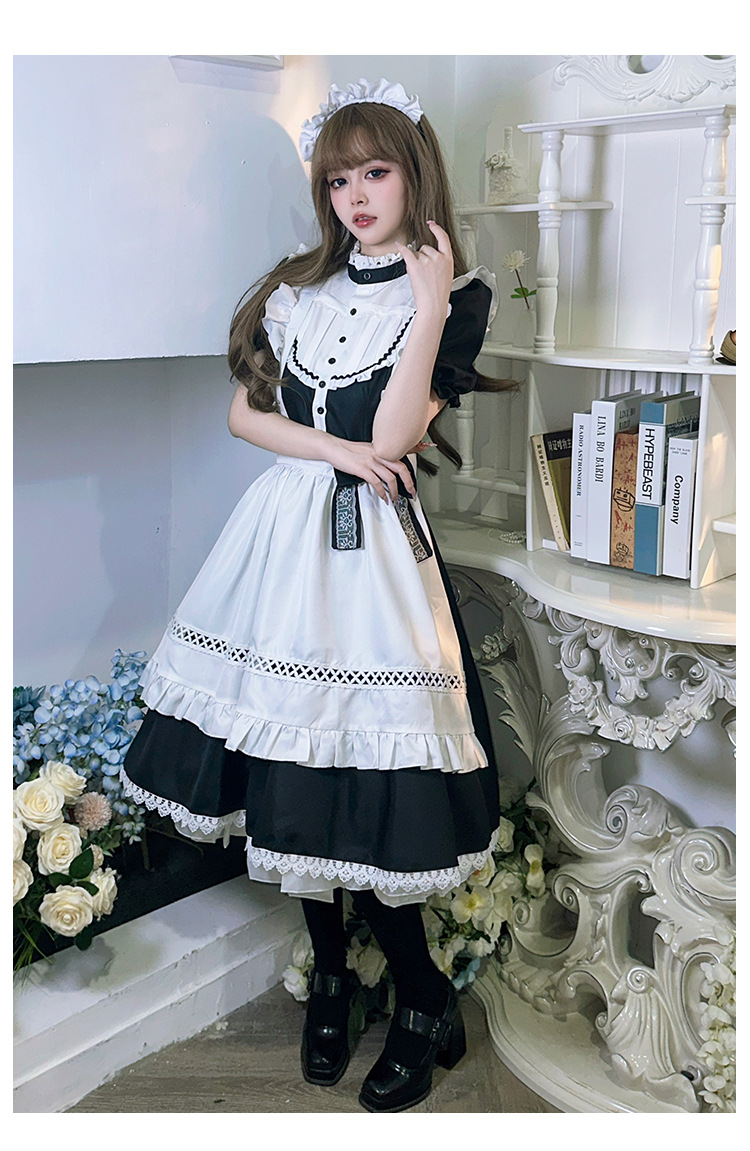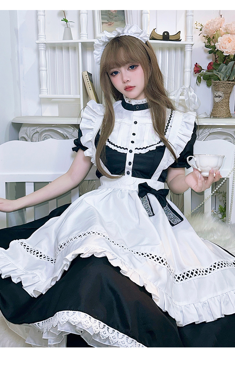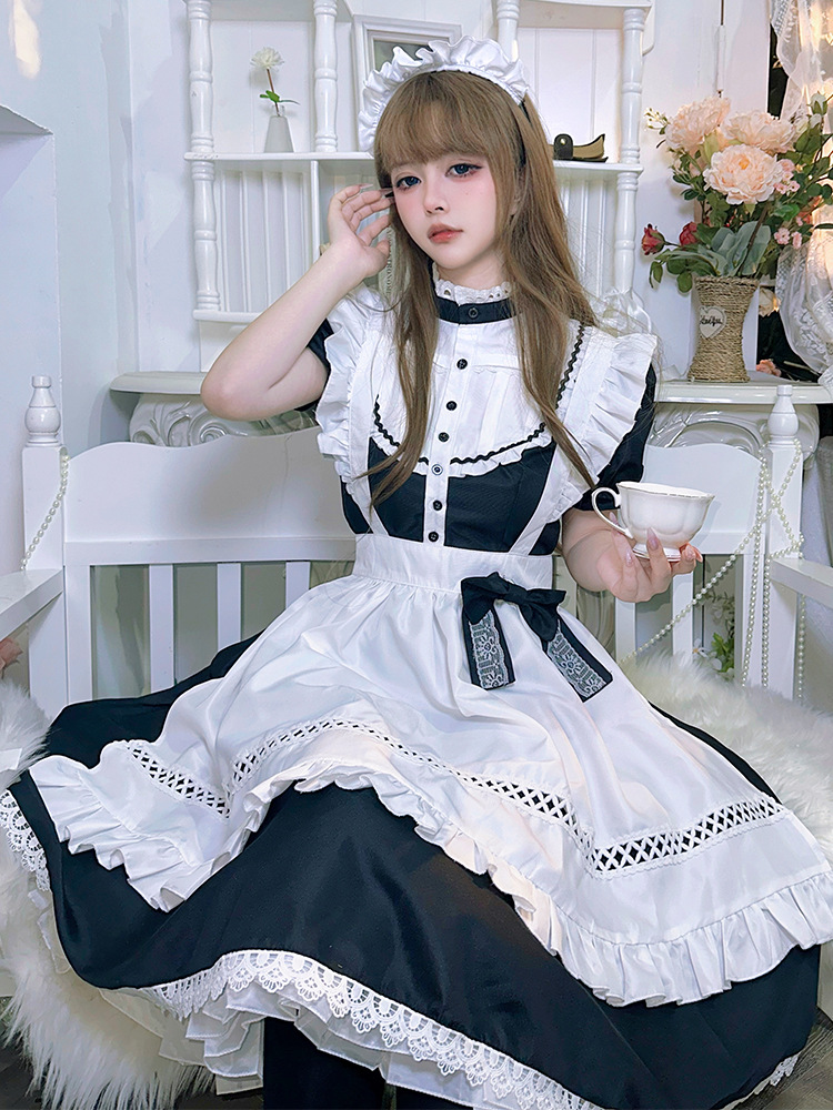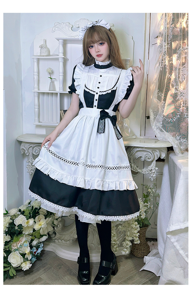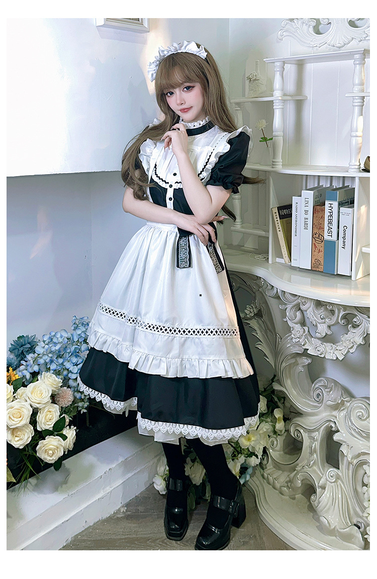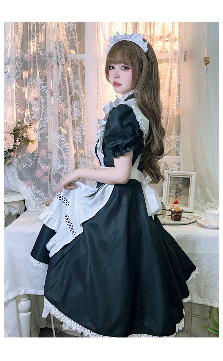 Черно-белый костюм горничной; Черно-белый костюм горничной + чулки; Черно-белый костюм горничной + Поддержка юбки; Черно-белый костюм горничной + чулки + Поддержка юбки