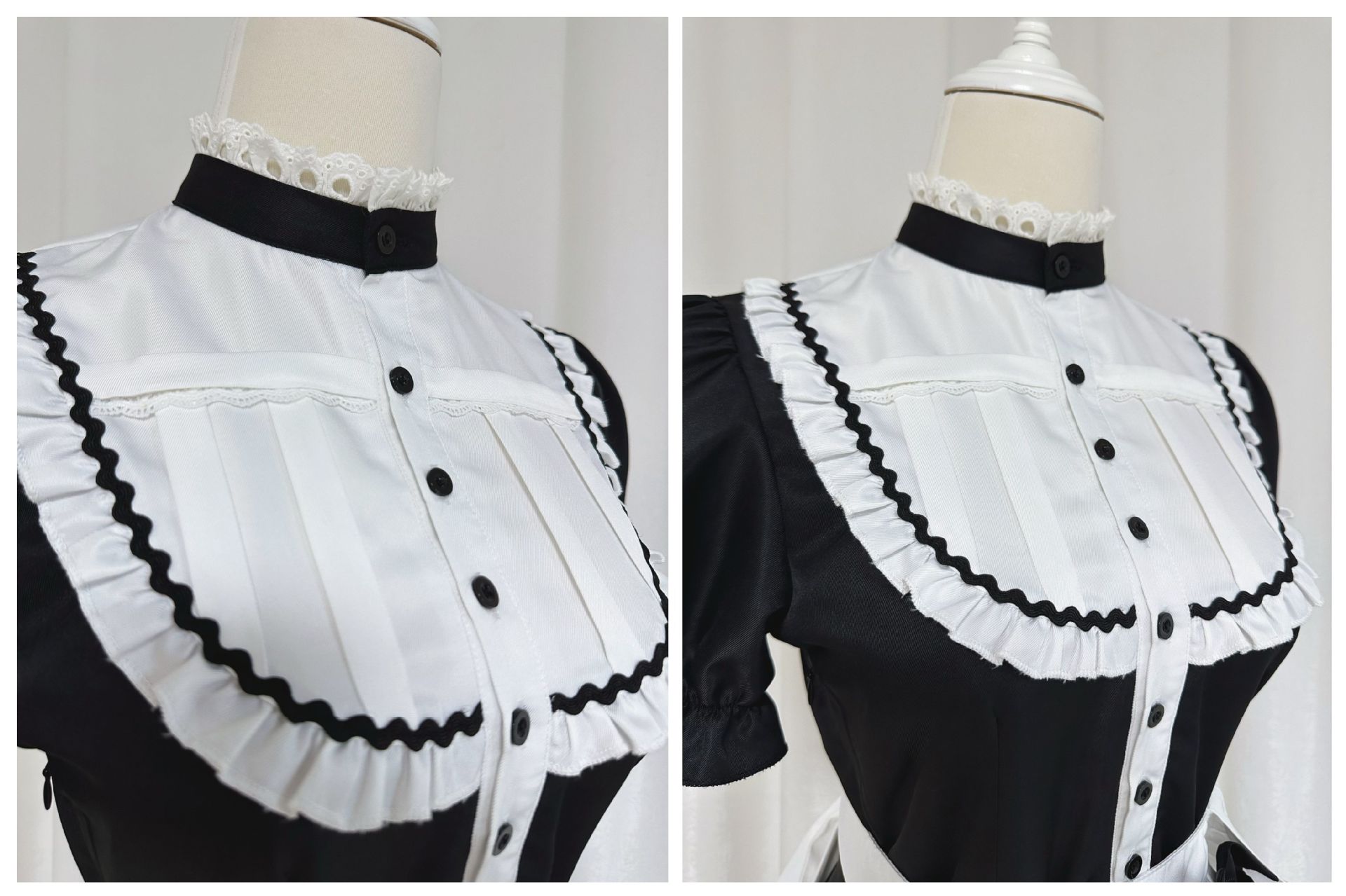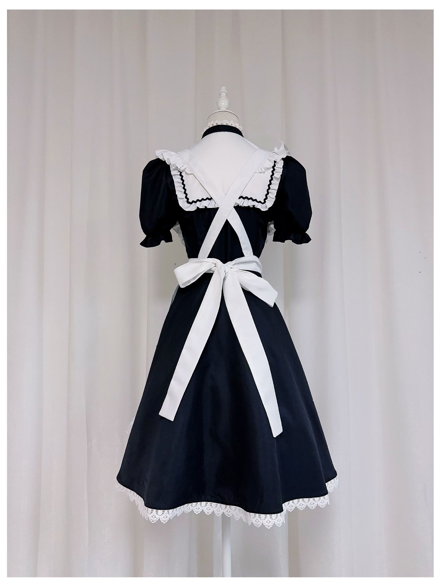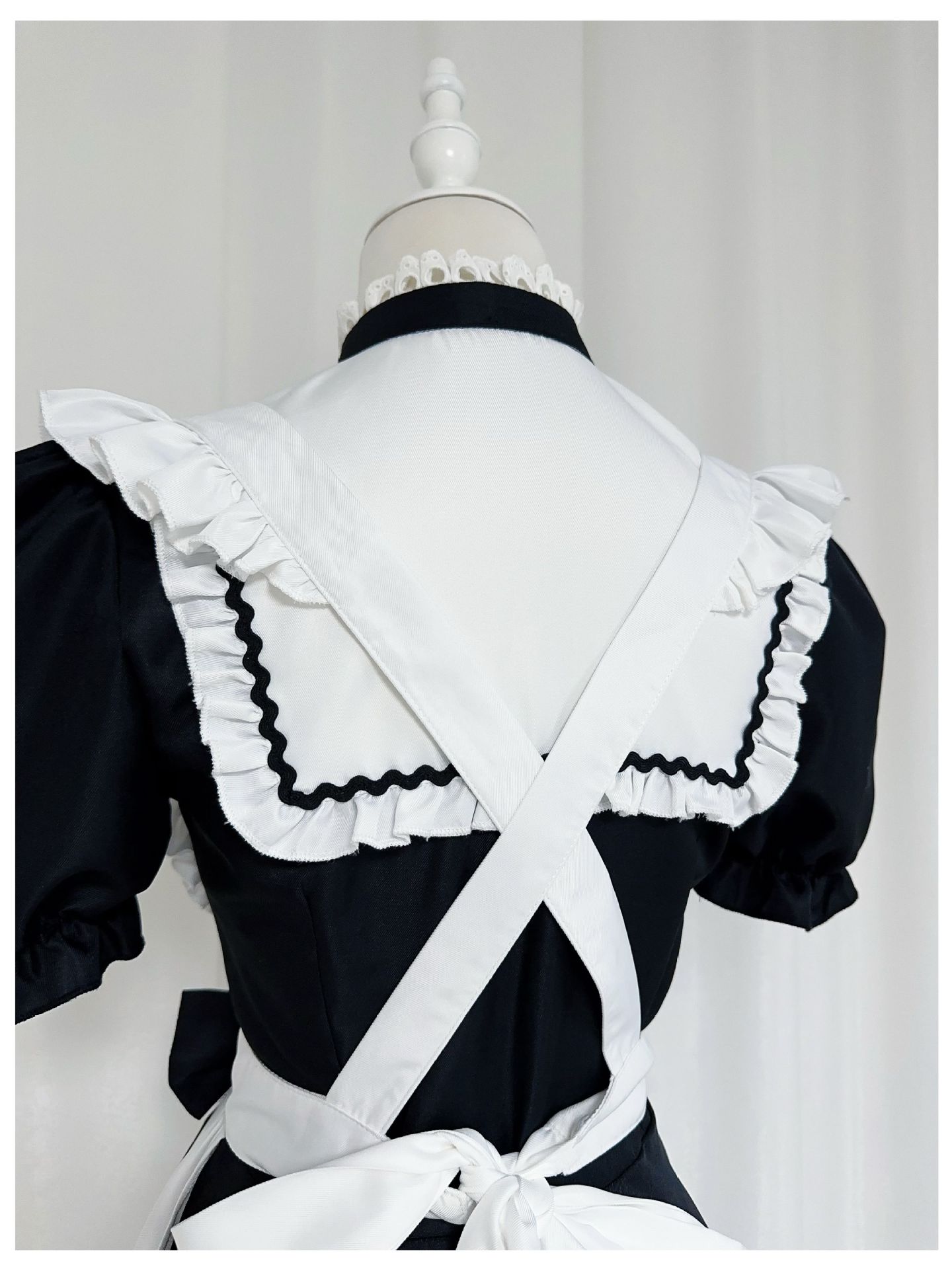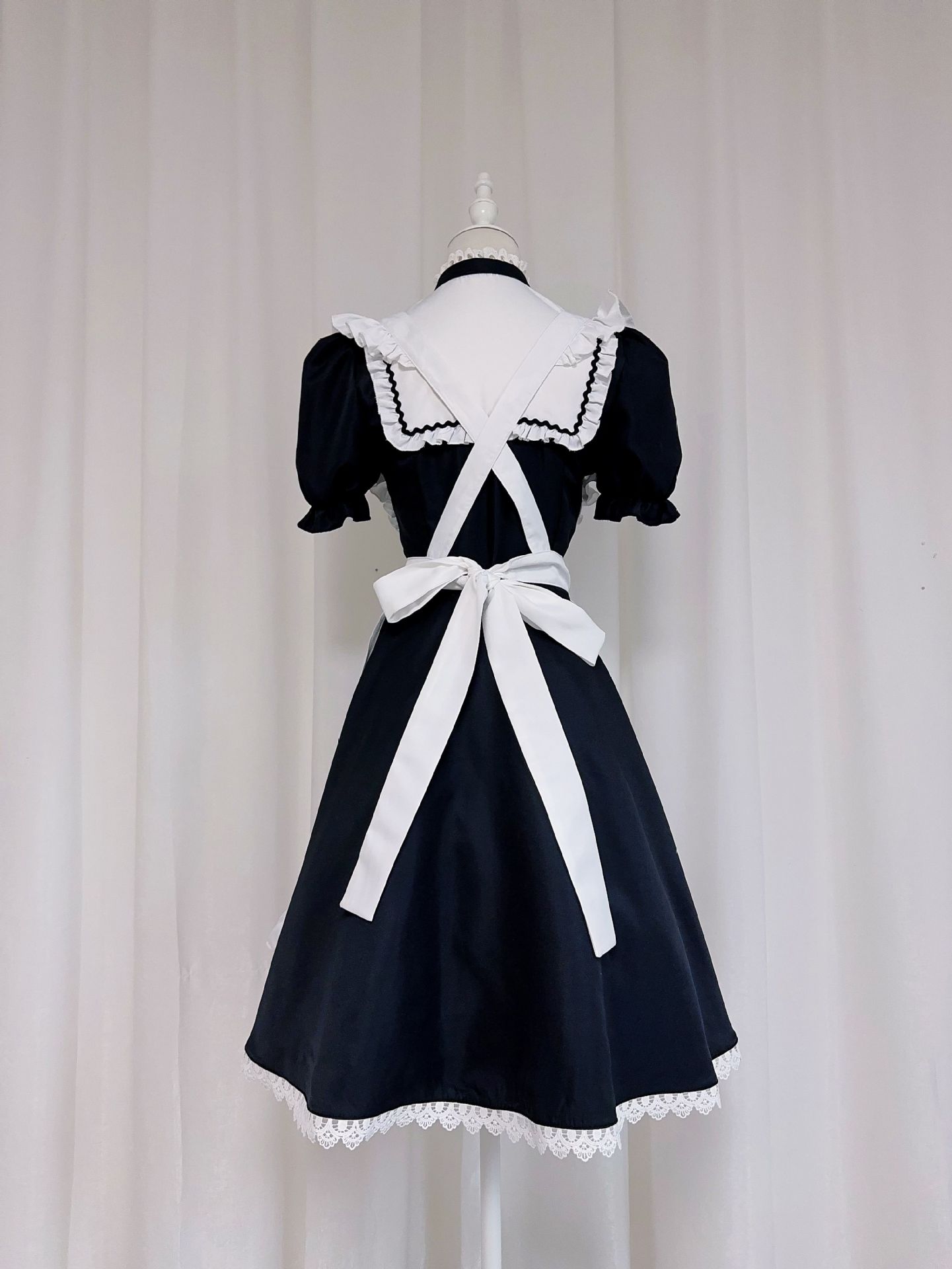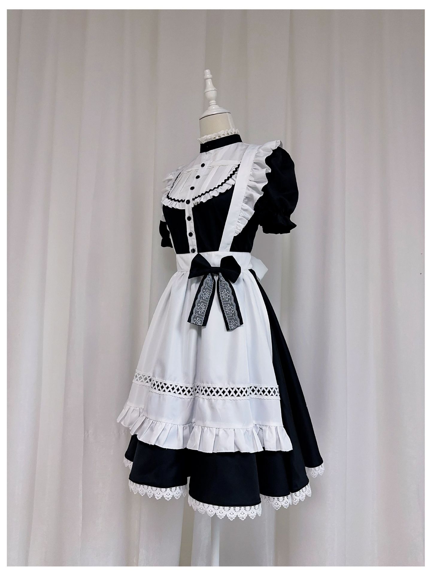 Трансграничный милый костюм горничной с бантом Британская форма горничной с воротником-стойкой плюс размер Британский Дворецкий Косплей Униформа слуги