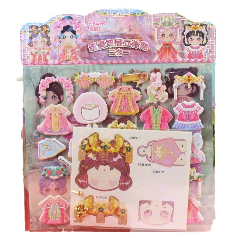 Детская мультяшная трехмерная одежда, двухслойная старинная поролоновая наклейка для девочек, бумажная кукла, органная книга, тихая книга, два в одном