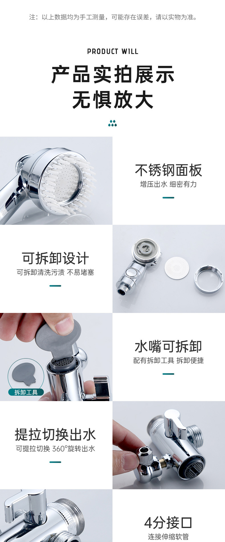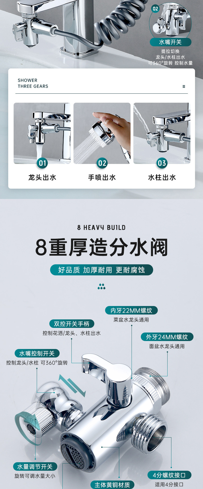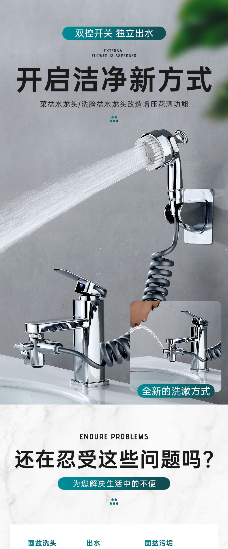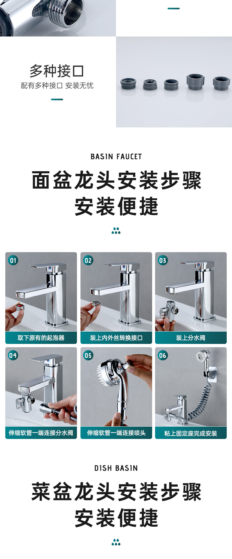 Смеситель для раковины (с массажной насадкой); Смеситель для раковины типа B (с трехскоростной форсункой); Одноместный массаж руля насадка; Одинарная трехступенчатая насадка для остановки воды одним щелчком мыши